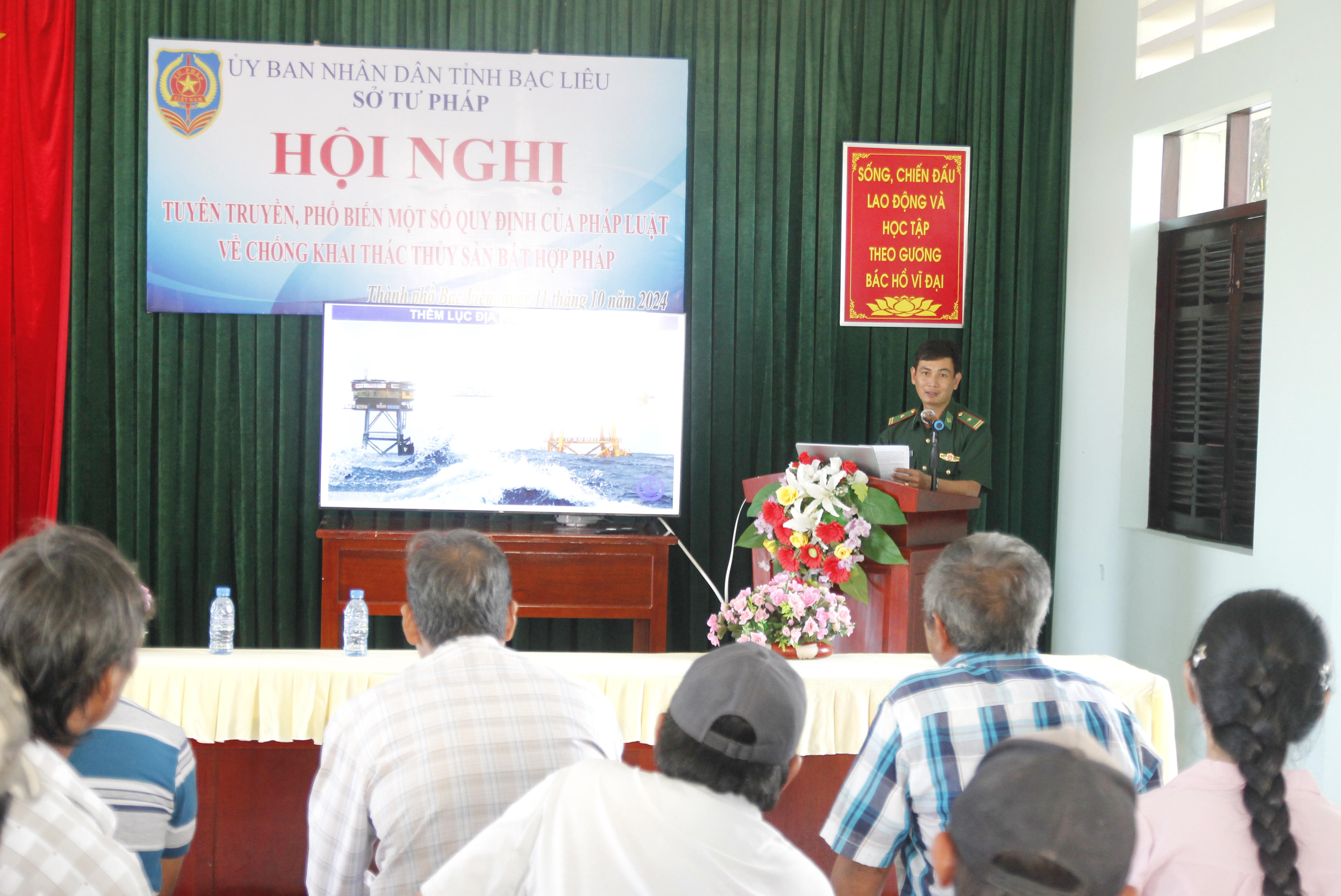 (PLVN) - Ngày 8 và 10 - 11/10, Sở Tư pháp Bạc Liêu chủ trì phối hợp Sở Nông nghiệp và Phát triển nông thôn, Bộ Chỉ huy Bộ đội Biên phòng, UBND phố Bạc Liêu, huyện Hòa Bình và huyện Đông Hải tổ chức Hội nghị tuyên truyền, phổ biến về chống khai thác IUU trên địa bàn tỉnh.