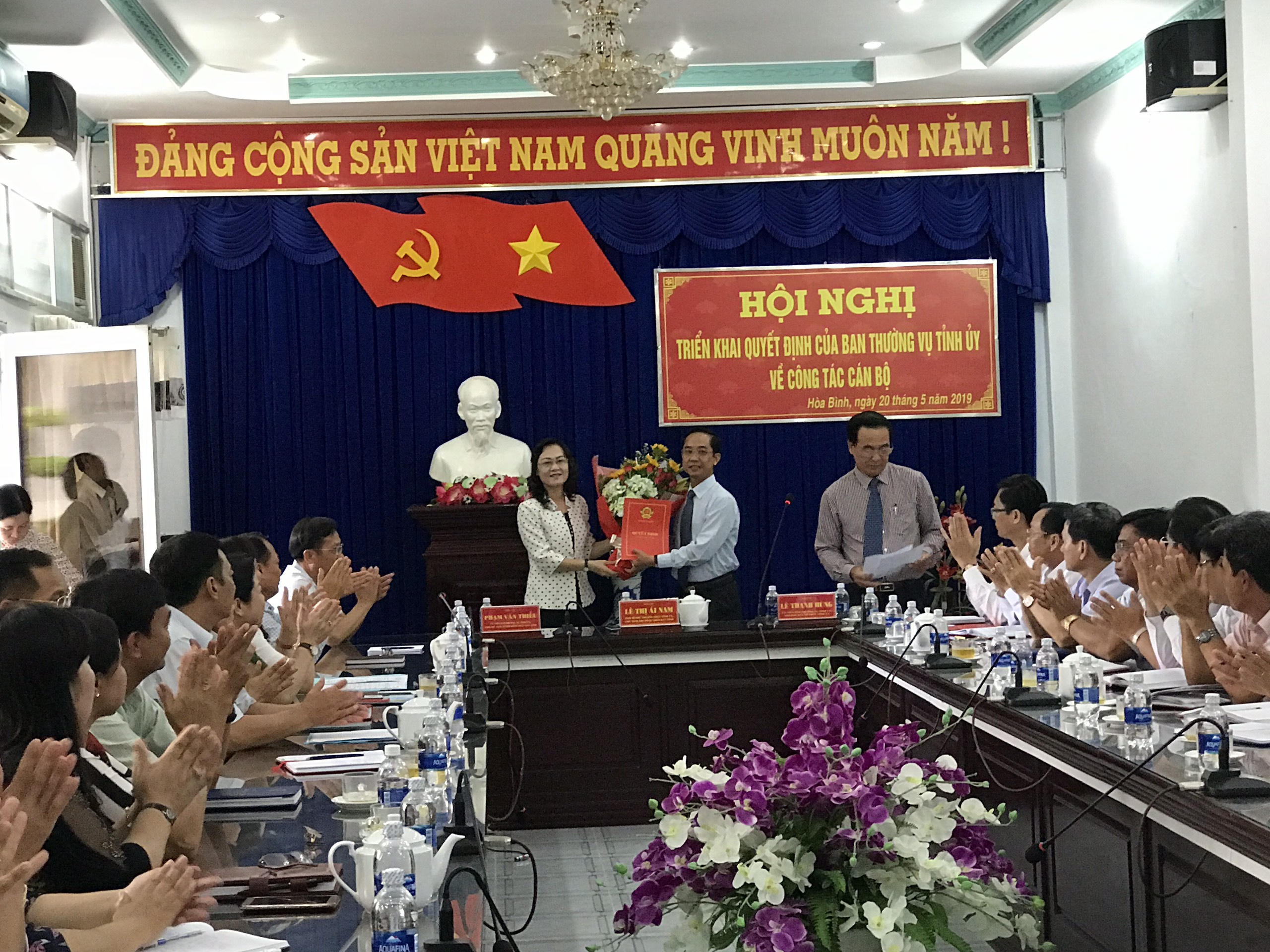 (PLVN) - Sáng 20/5, bà Lê Thị Ái Nam, Phó Bí thư Thường trực Tỉnh ủy, Chủ tịch HĐND tỉnh Bạc Liêu đã triển khai quyết định của Ban Thường vụ Tỉnh ủy về công tác cán bộ, điều động ông Hồ Thanh Thủy giữ chức vụ Bí thư Huyện uỷ huyện Hòa Bình.