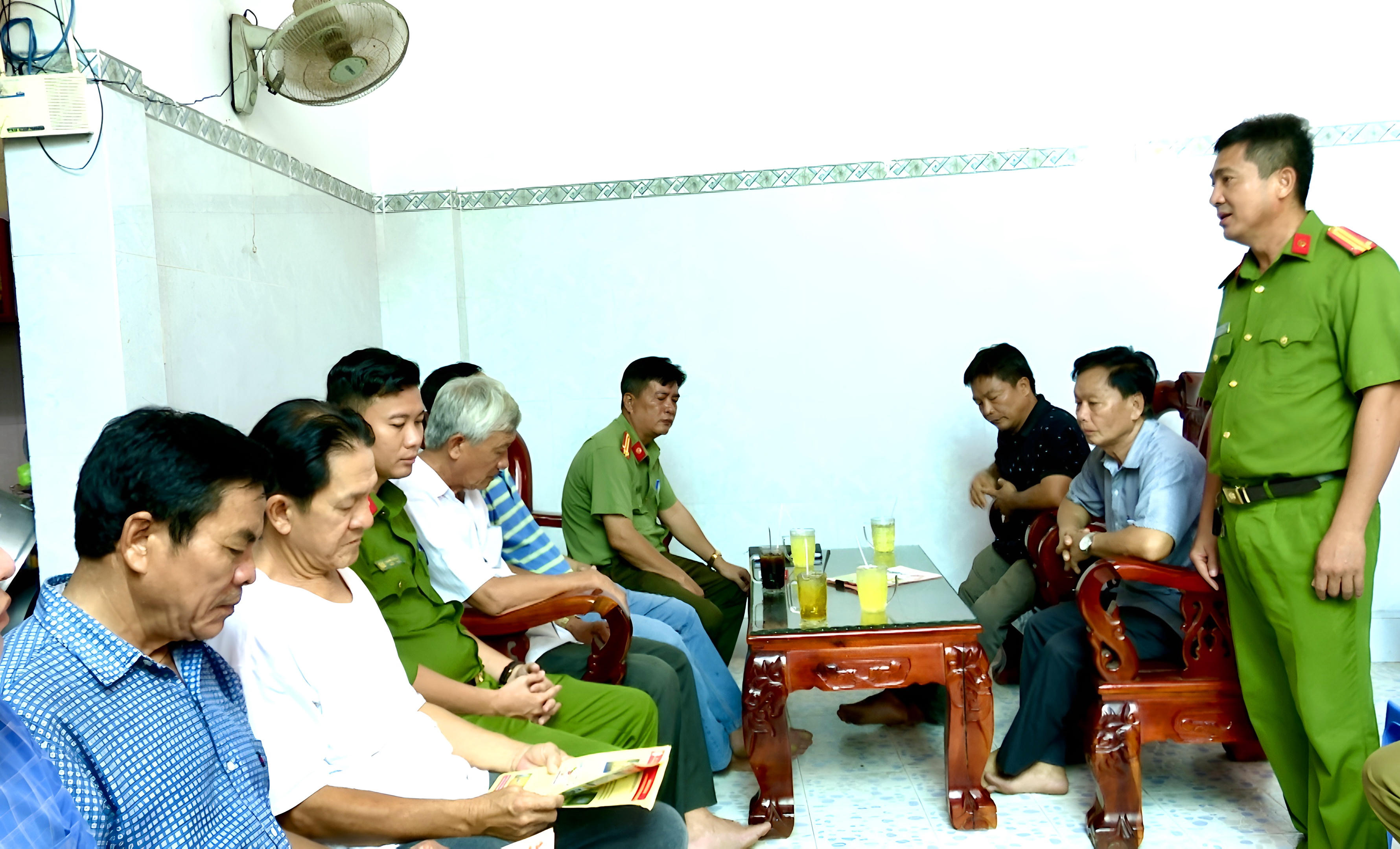 Lực lượng Công an cấp xã đến tận nhà tuyên truyền cho người dân. |