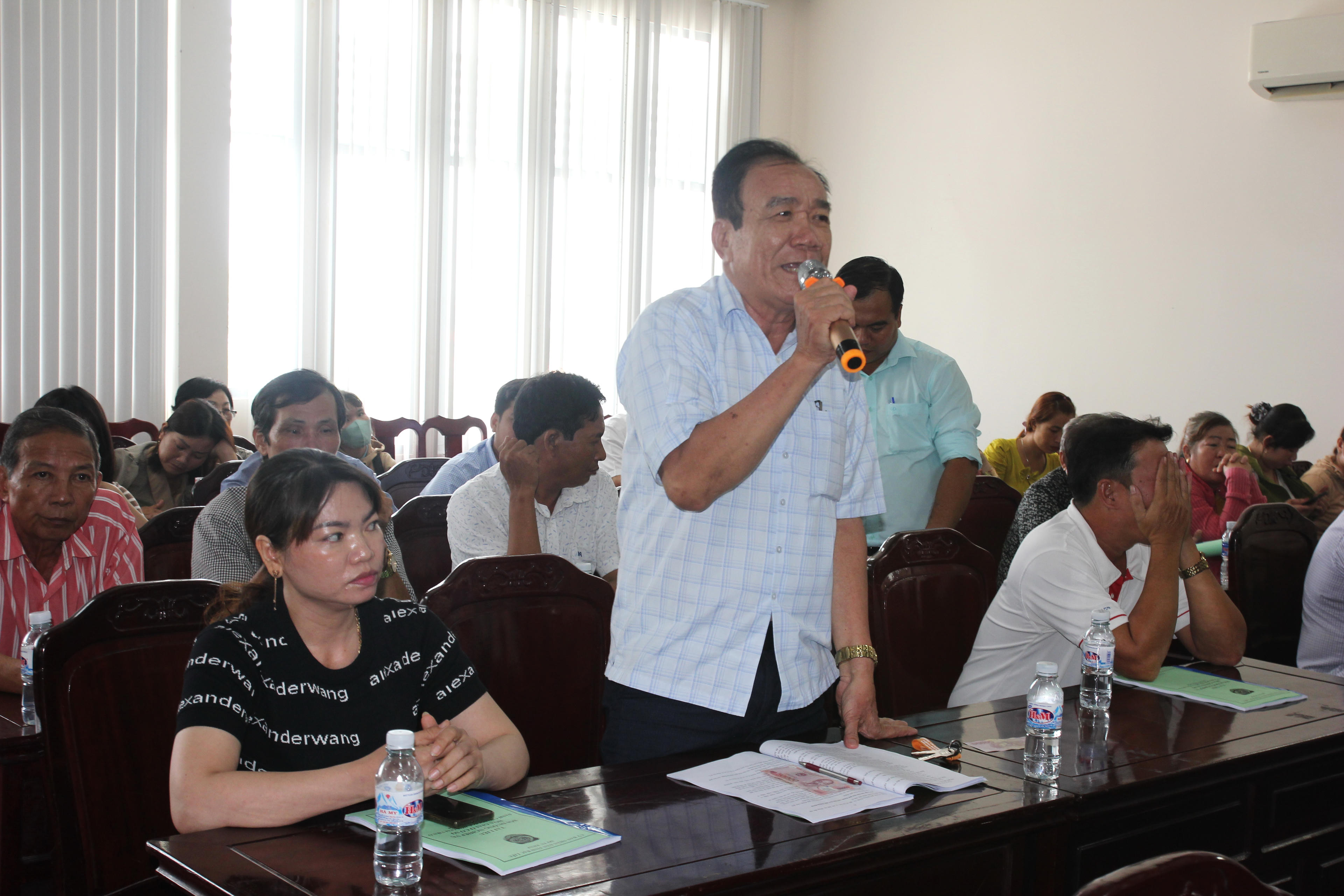 Ông Dương Văn Suốt (Tổ trưởng Tổ hòa giải ấp thị trấn A, Hòa Bình), chia sẻ kinh nghiệm về vai trò ý nghĩa và kỹ năng hòa giải ở cơ sở. |