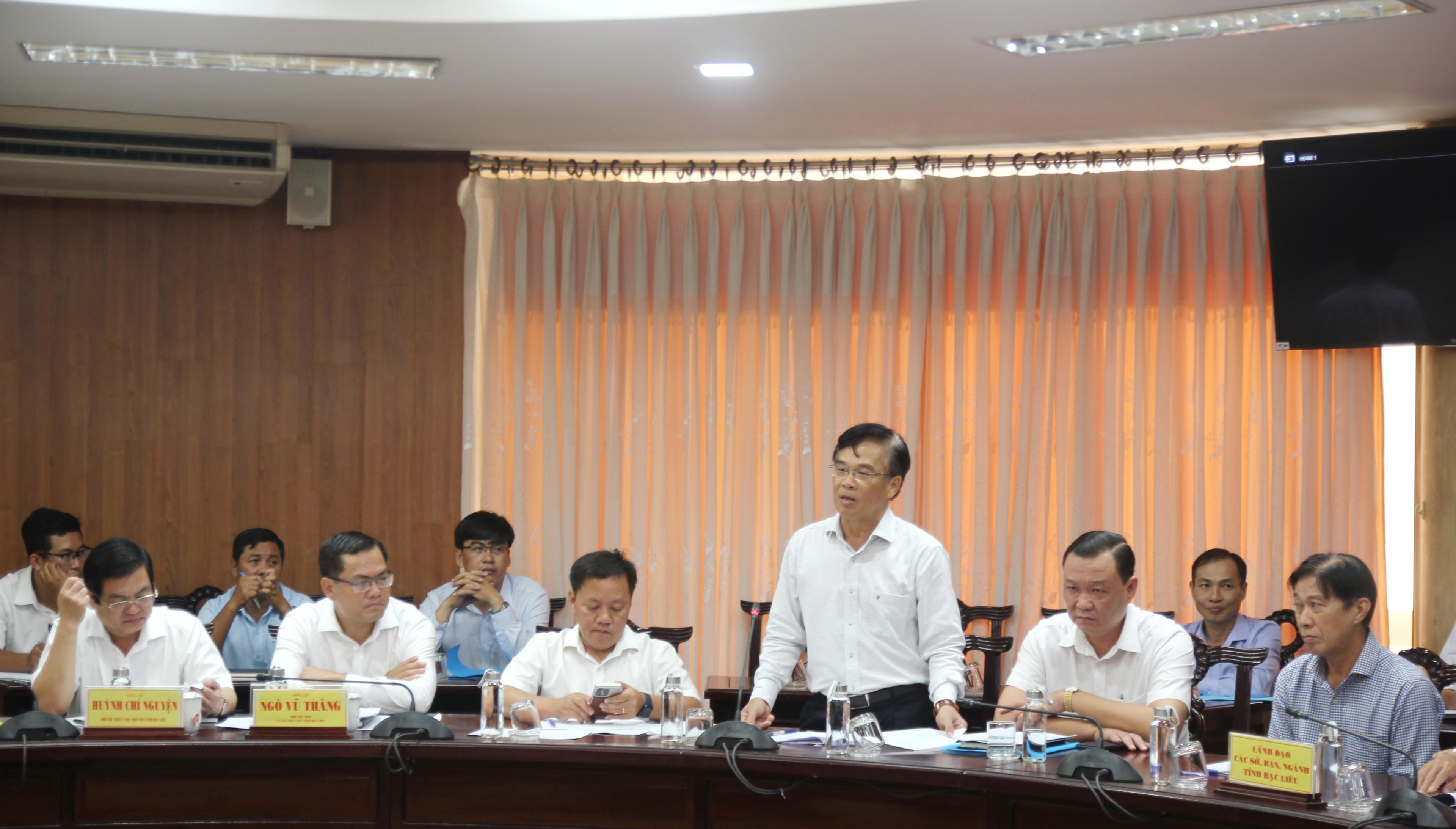 Đại diện lãnh đạo Sở, ban, ngành báo cáo về tình hình sạt lở, sụt lún đất trên địa bàn tỉnh Bạc Liêu. |