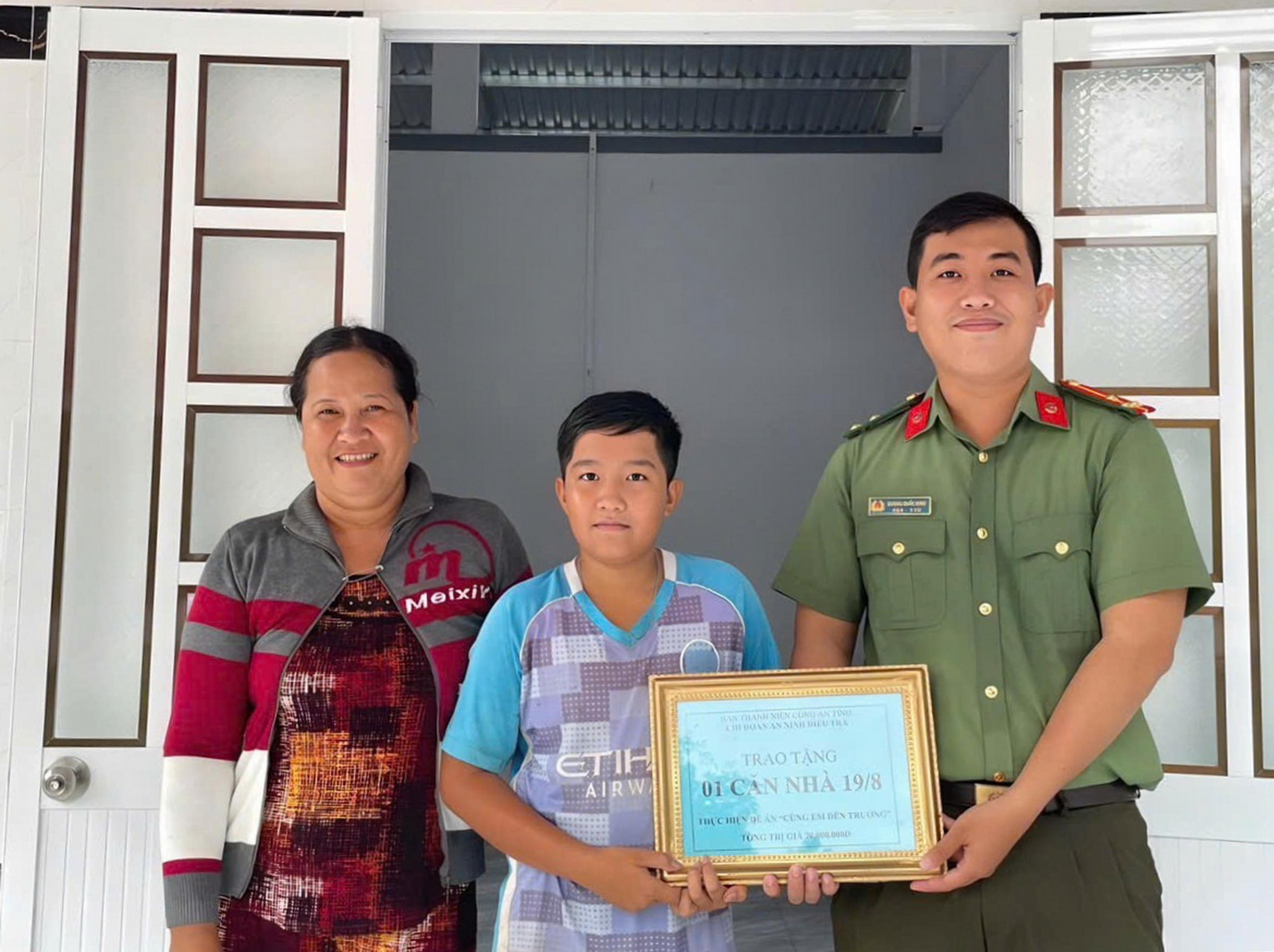 Chi đoàn An ninh điều tra (Công an tỉnh Bạc Liêu) trao kinh phí hỗ trợ xây dựng nhà cho gia đình em Nguyễn Minh Ril. |