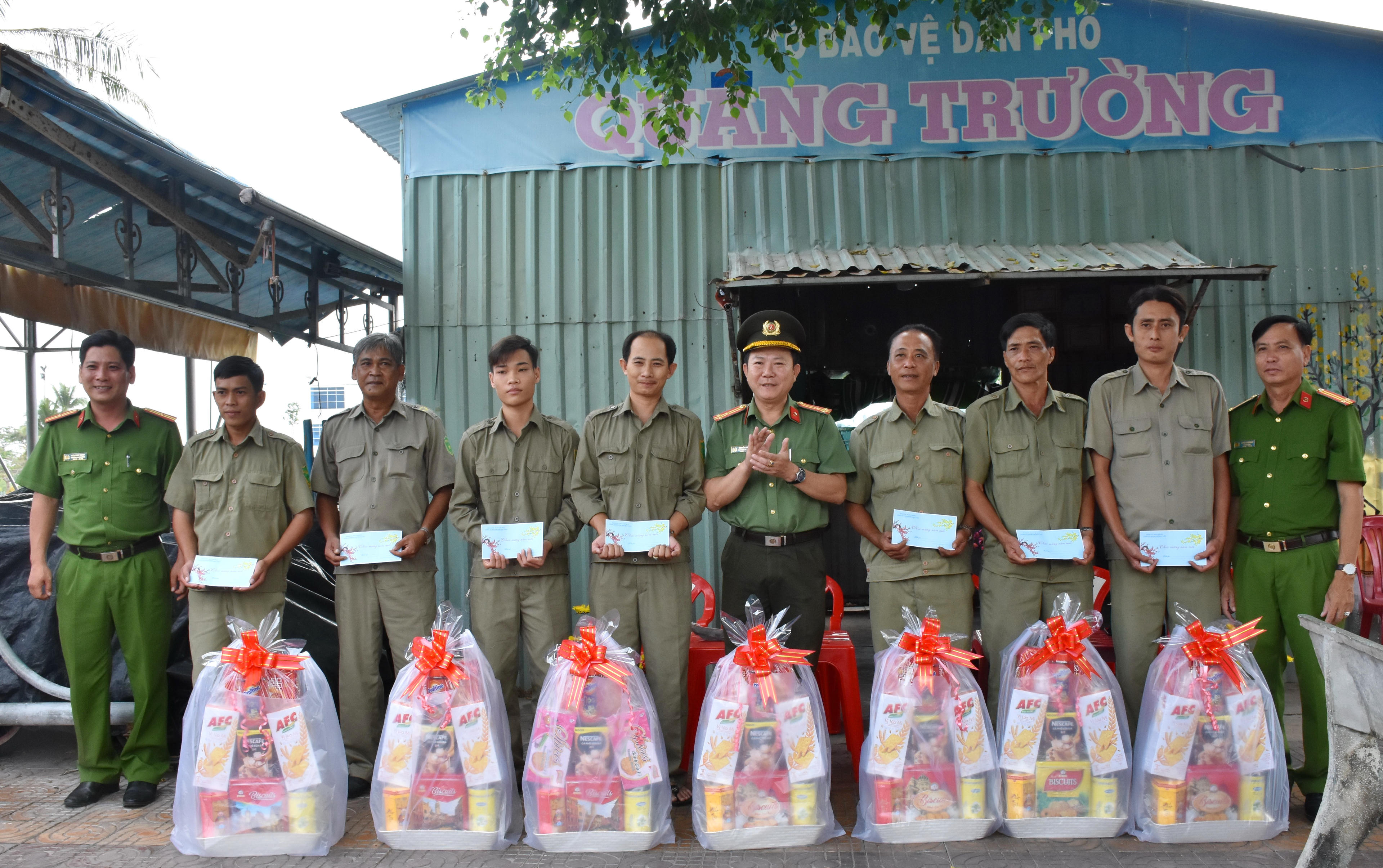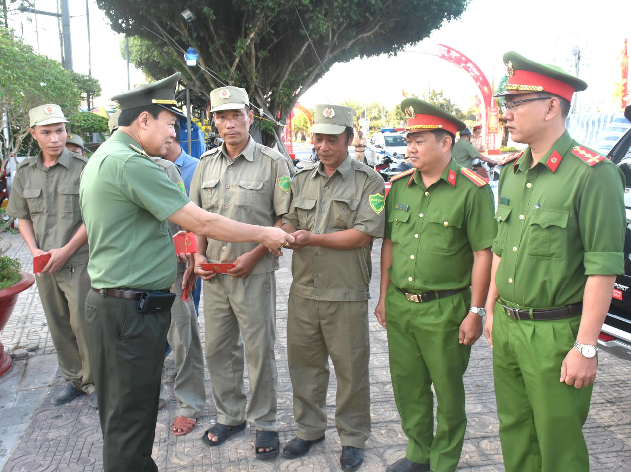 Các đơn vị, địa phương thường xuyên vận động cán bộ, chiến sĩ toàn lực lượng đóng góp trao tặng hàng trăm phần quà cho các thành viên Ban Bảo vệ dân phố, Đội Dân phòng có hoàn cảnh khó khăn. |