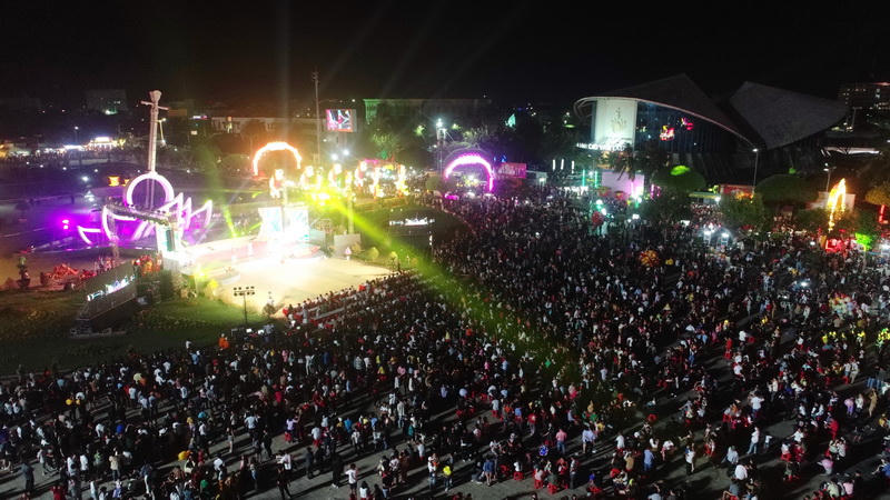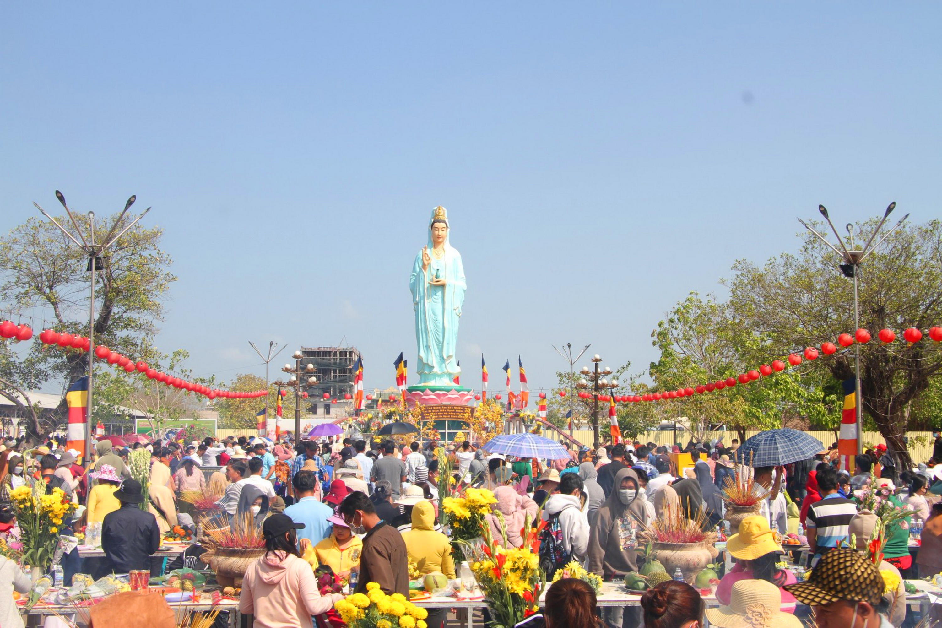 Du khách chen chân tại khu vực tượng Phật Bà (Mẹ Nam Hải, phường Nhà Mát, TP Bạc Liêu) thắp hương xin lộc đầu năm. |