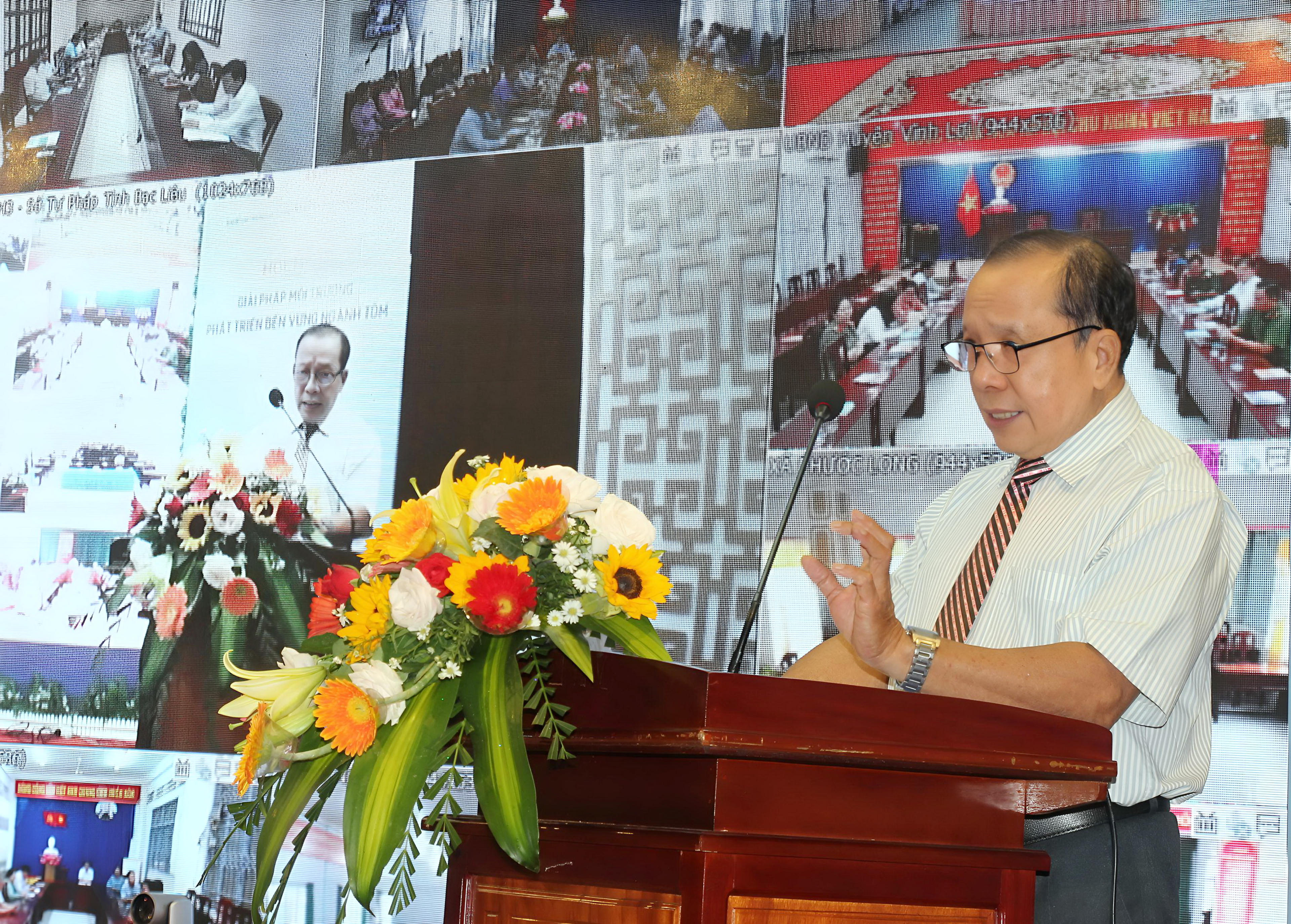 Ông Trần Minh Đức - Phó Giám đốc Sở Tư pháp, Phó Chủ tịch Hội đồng Phối hợp phổ biến, giáo dục pháp luật tỉnh Bạc Liêu, phát biểu tại Hội nghị. |