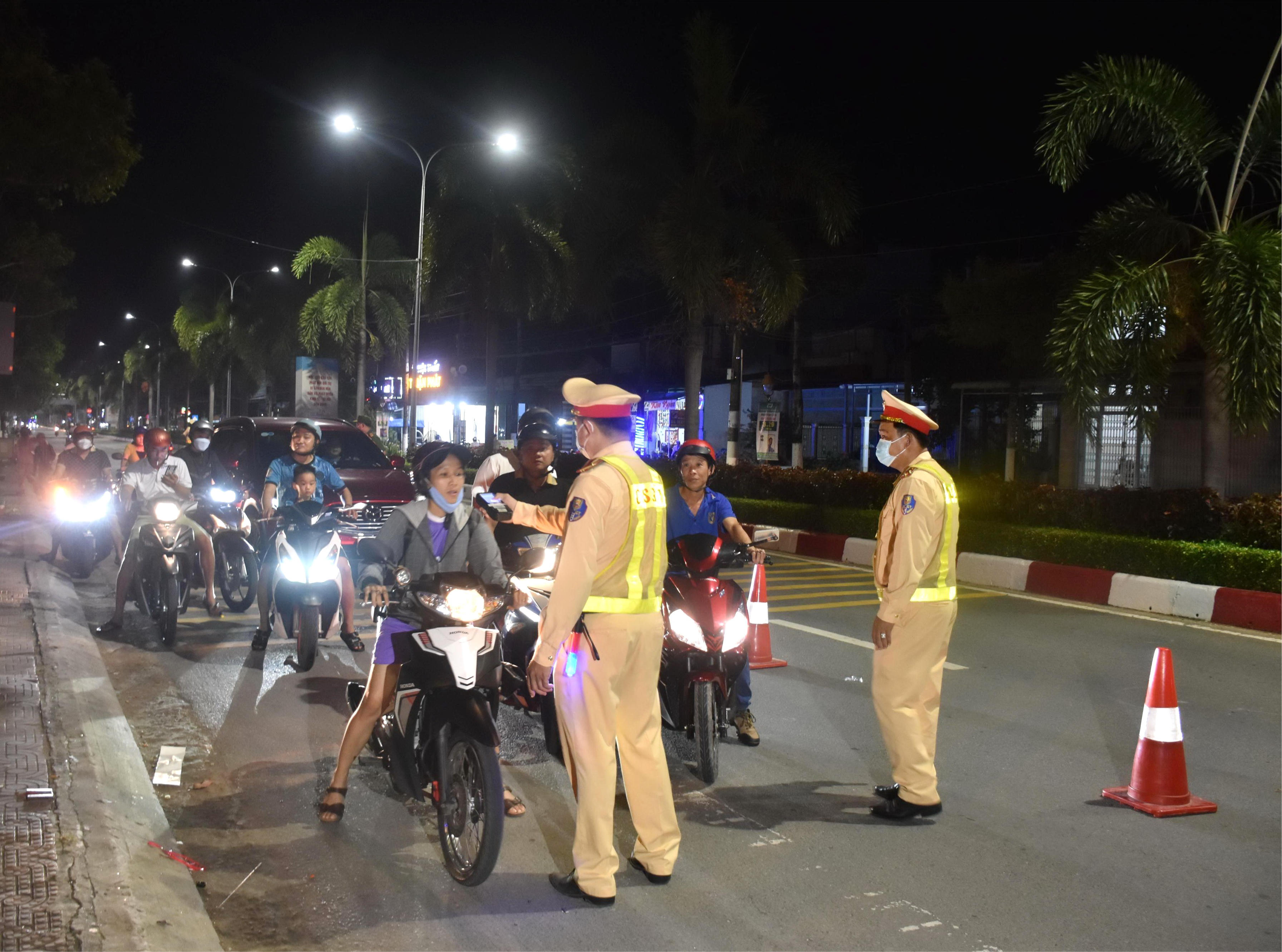 Lực lượng Cảnh sát giao thông Bạc Liêu lập chốt kiểm tra nồng độ cồn xe mô tô và tài xế xe ô tô. |