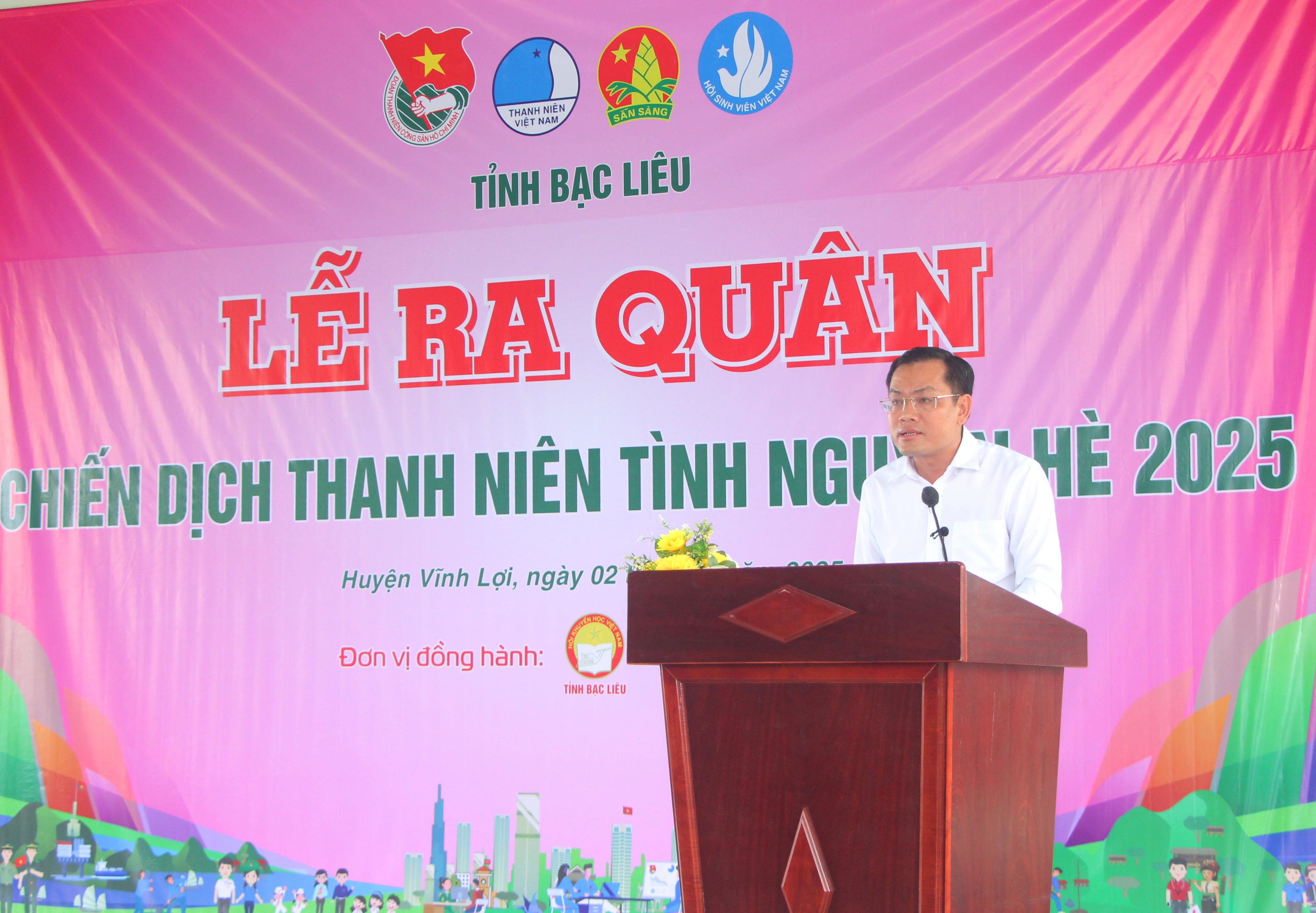 Tham dự lễ ra quân có ông Huỳnh Quốc Việt - Ủy viên dự khuyết BCH TW Đảng, Phó Bí thư Thường trực Tỉnh ủy; ông Ngô Vũ Thăng - Phó Chủ tịch UBND tỉnh; lãnh đạo huyện Vĩnh Lợi và đông đảo cán bộ, đoàn viên, thanh niên, người dân trên địa bàn.