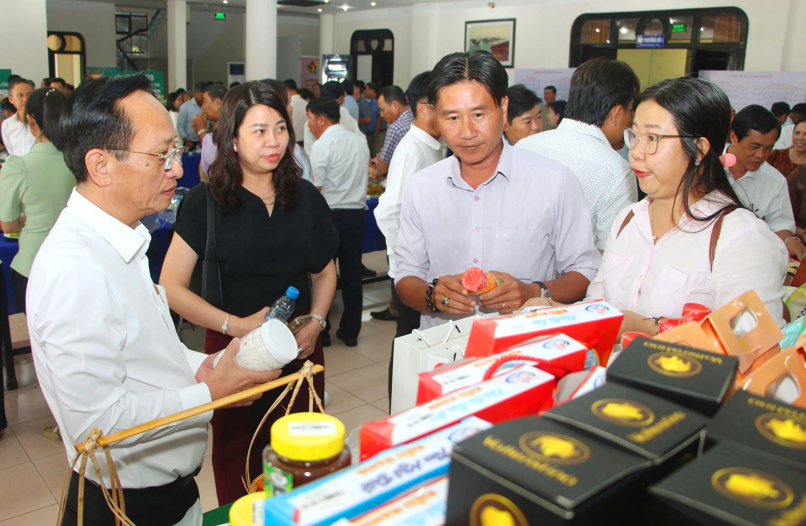 Ông Phạm Văn Thiều - Phó Bí thư Tỉnh ủy, Chủ tịch UBND tỉnh, Trưởng BCĐ các Chương trình MTQG tỉnh Bạc Liêu tham gian hàng OCOP. |