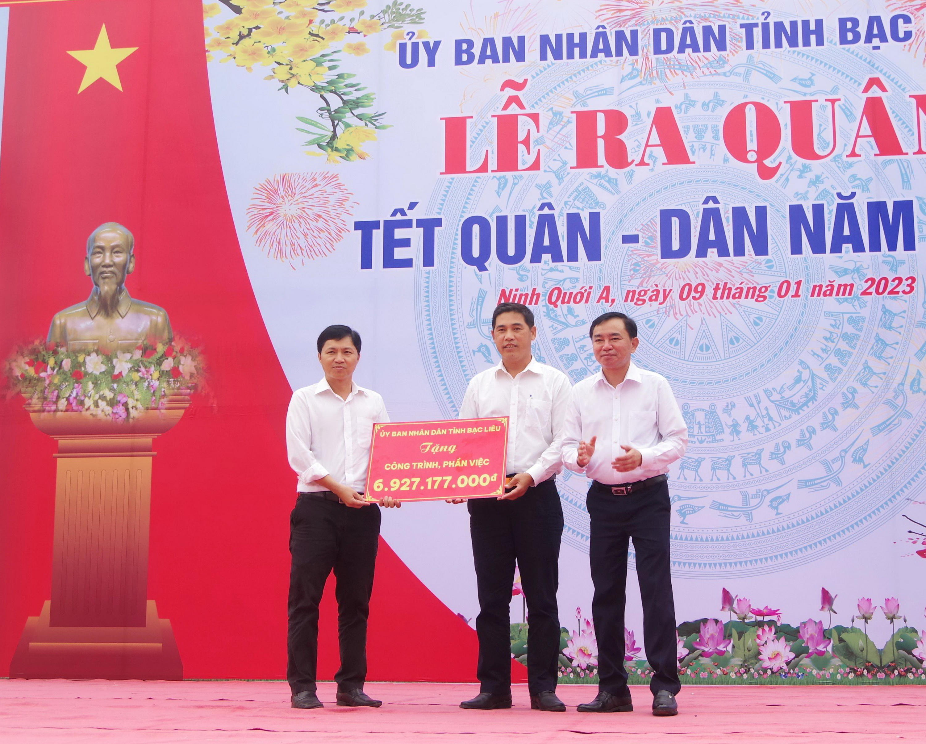 Ông Phan Thanh Duy - Phó Chủ tịch UBND tỉnh Bạc Liêu trao tặng công trình, phần việc trị giá 6.927.177.000 tỷ đồng (Ảnh: Văn Đông). |