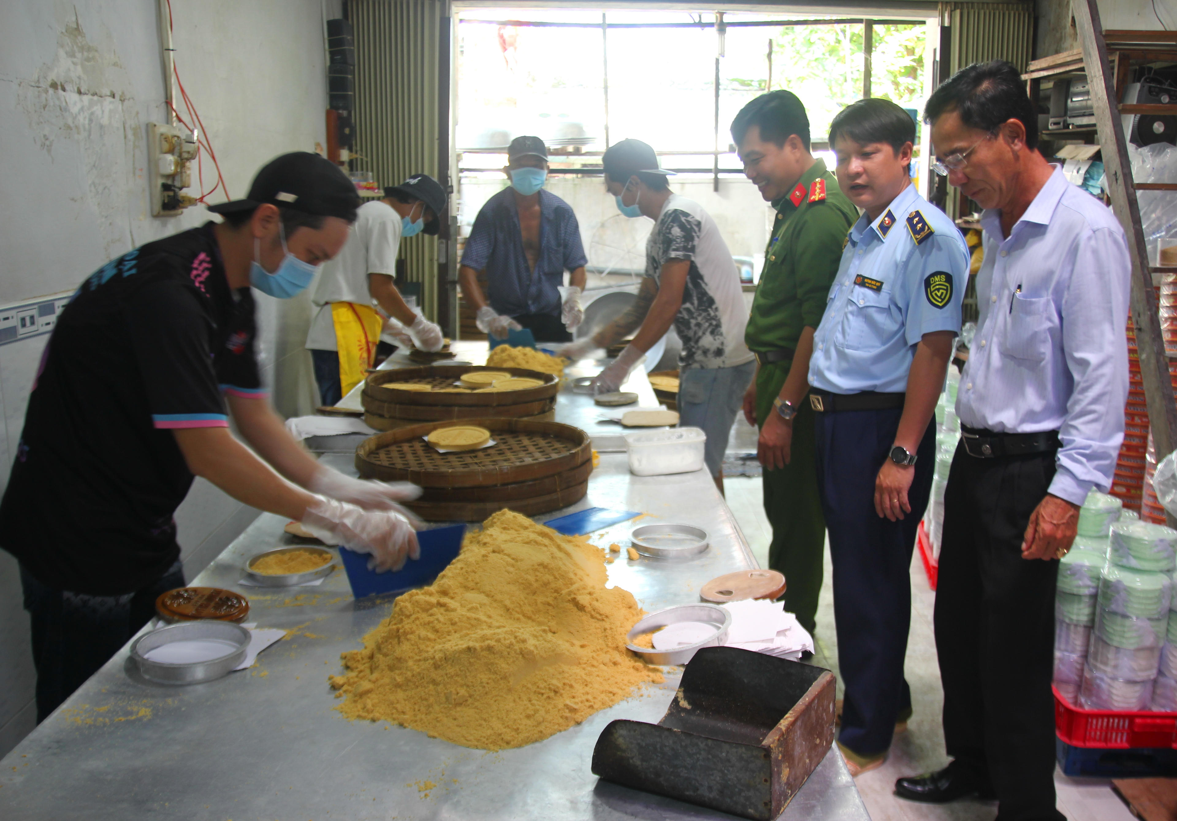 Đoàn kiểm tra liên ngành kiểm tra quy trình sản xuất bánh của các cơ sở trên địa bàn TP Bạc Liêu. |