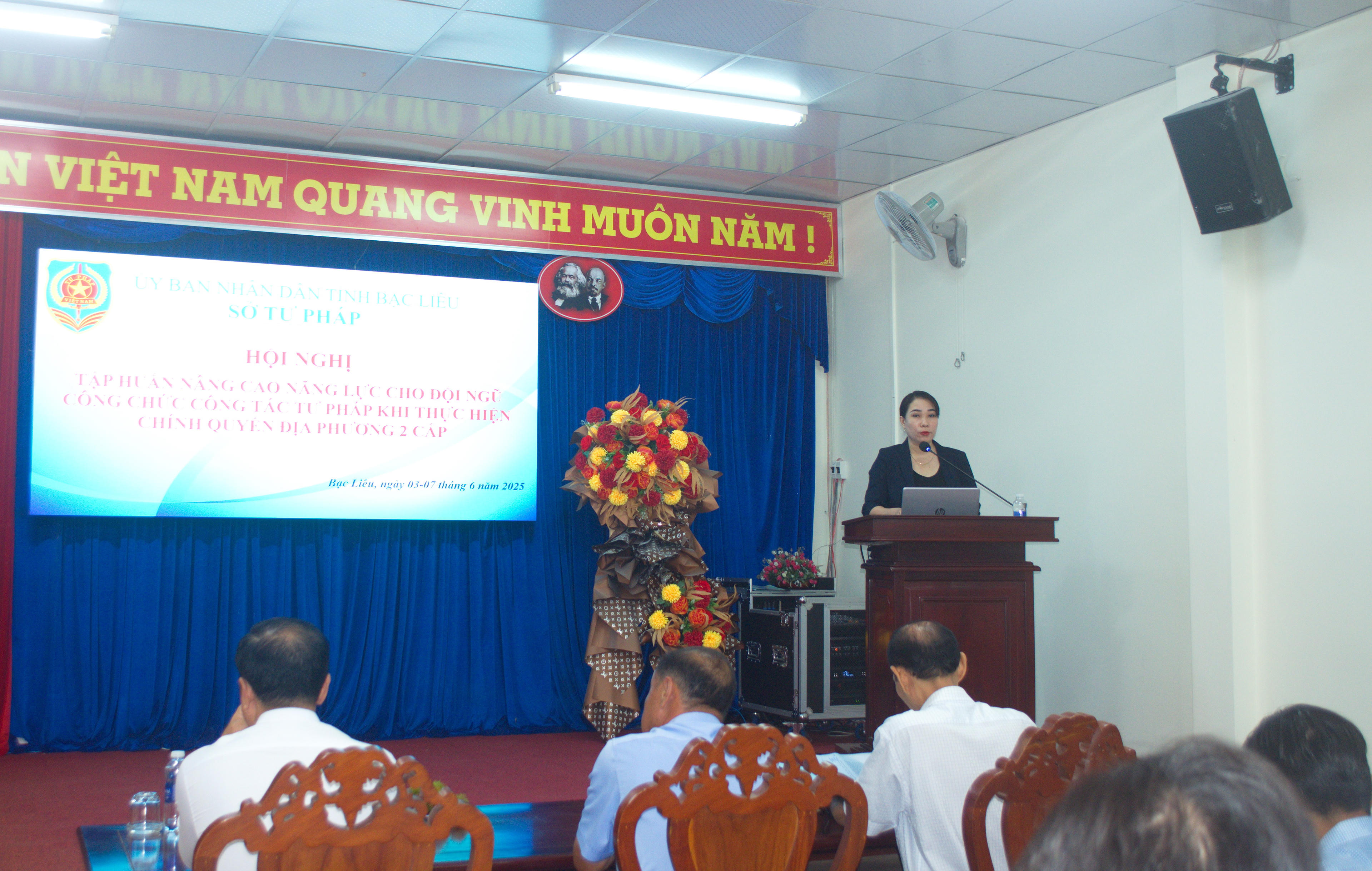 (PLVN) - Ngày 3/6, Sở Tư pháp tỉnh Bạc Liêu tổ chức khai mạc Hội nghị Tập huấn công tác Tư pháp cho đội ngũ công chức Tư pháp trong toàn tỉnh (lớp tập huấn thứ 2, diễn ra 5 ngày, từ ngày 3 - 7/6/2025).