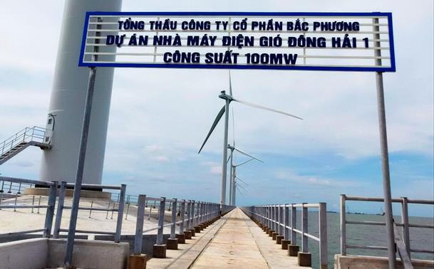 Công trình dự án nhà máy điện gió Đông Hải 1 - Dự án điện gió ngoài khơi lớn nhất tại Bạc Liêu. |