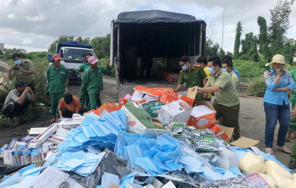 Hàng hóa tiêu hủy gồm: trên 7.000 bao thuốc lá, gần 50.000 khẩu trang y tế, đồ chơi trẻ em bằng nhựa có tính chất bạo lực, mỹ phẩm, thực phẩm,.. là các loại hàng giả, hàng nhái, hàng kém chất lượng, hàng nhập lậu, không rõ nguồn gốc xuất xứ. Tổng trị giá hàng hóa tiêu hủy trên 158 triệu đồng.