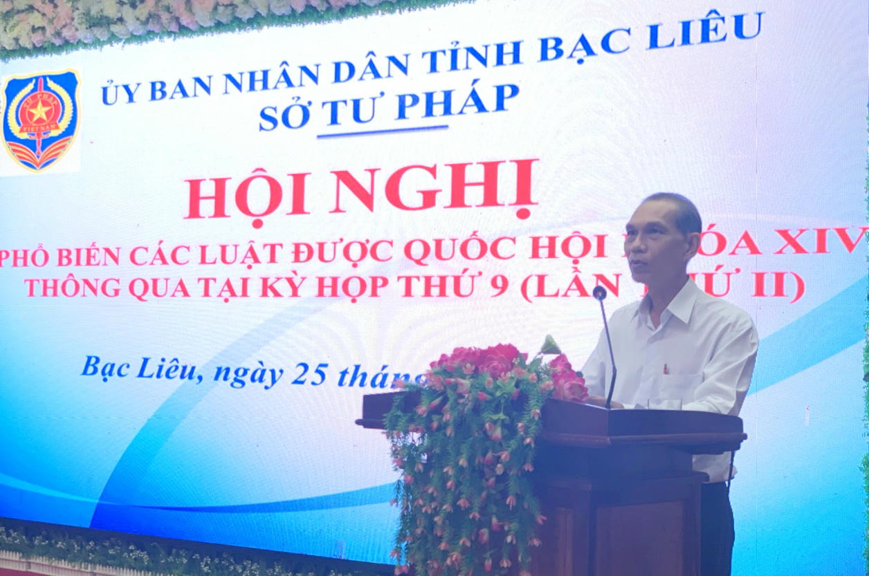 Phát biểu Kết luận Hội nghị, Phó Giám đốc Sở Tư pháp, Phó Chủ tịch Hội đồng Phối hợp PBGDPL tỉnh Bạc Liêu Trần Minh Đức, cho rằng: Đây là 5 luật nằm trong 10 luật được Quốc hội thông qua tại kỳ họp thứ 9. Như vậy, đến nay 10 luật được Quốc hội thông qua đã được tỉnh tổ chức phổ biến cho cán bộ, công chức chủ chốt cấp tỉnh, cấp huyện.