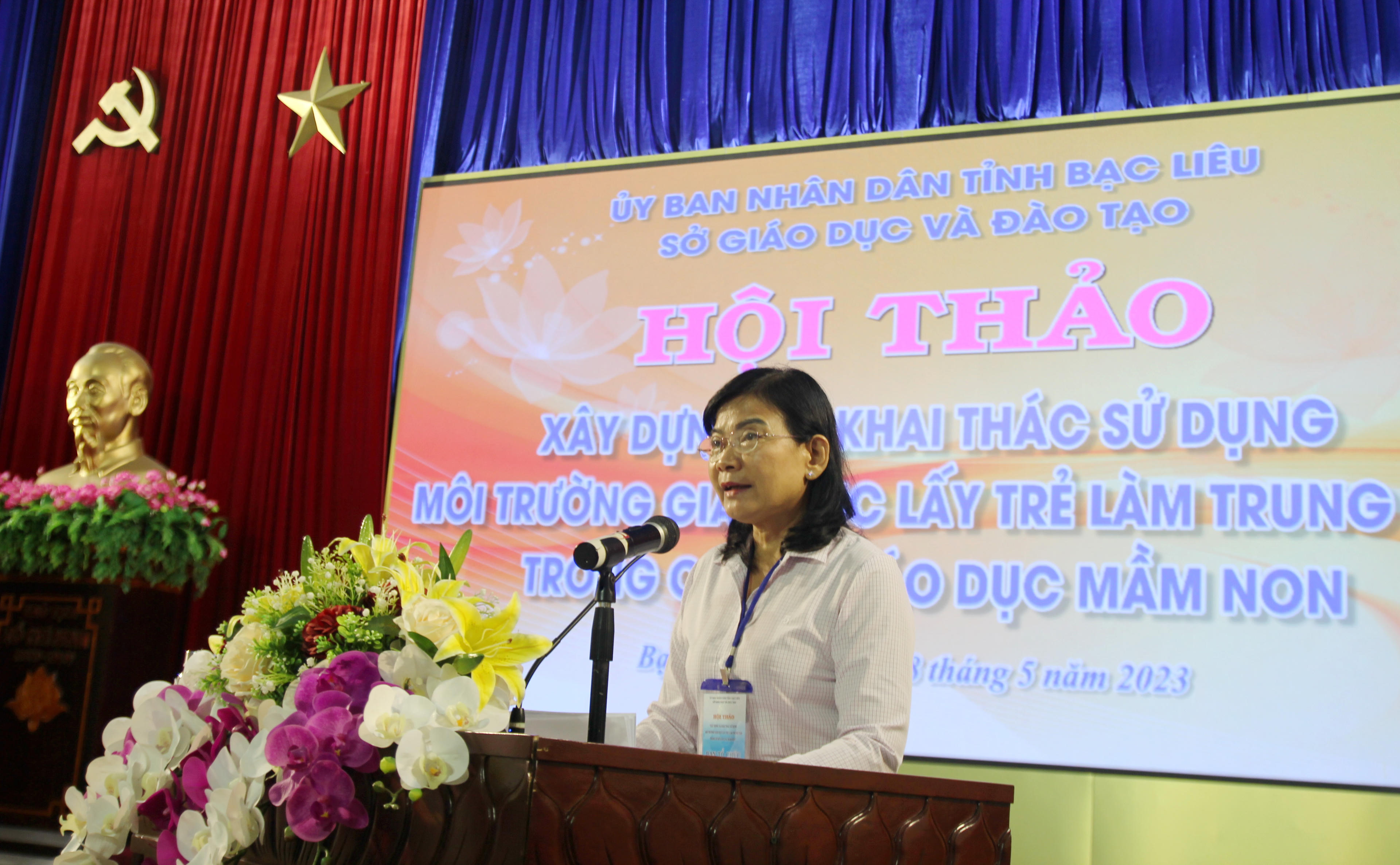 Bà Lâm Thị Sang – Giám đốc Sở Giáo dục và Đào tạo tỉnh Bạc Liêu, phát biểu tổng kết Hội thảo. |