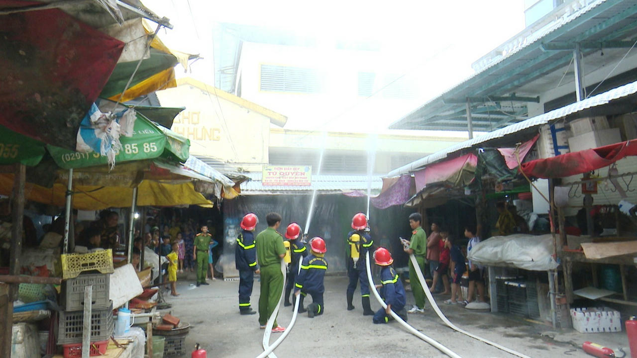 Tổ chức thực tập phương án chữa cháy và CNCH tại khu dân cư nguy cơ cháy, nổ cao. |