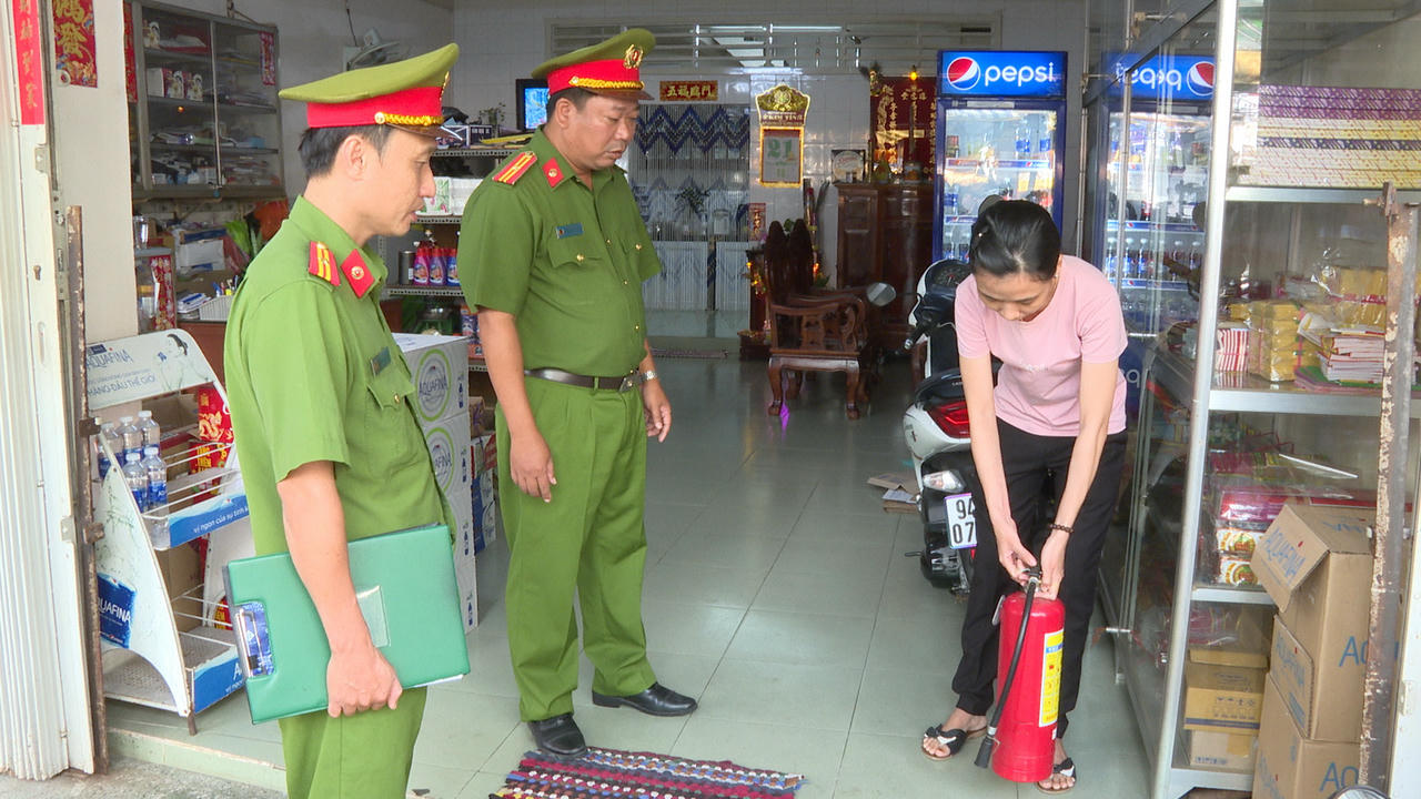 Lực lượng Công an kiểm tra điều kiện an toàn PCCC tại cơ sở kinh doanh. |