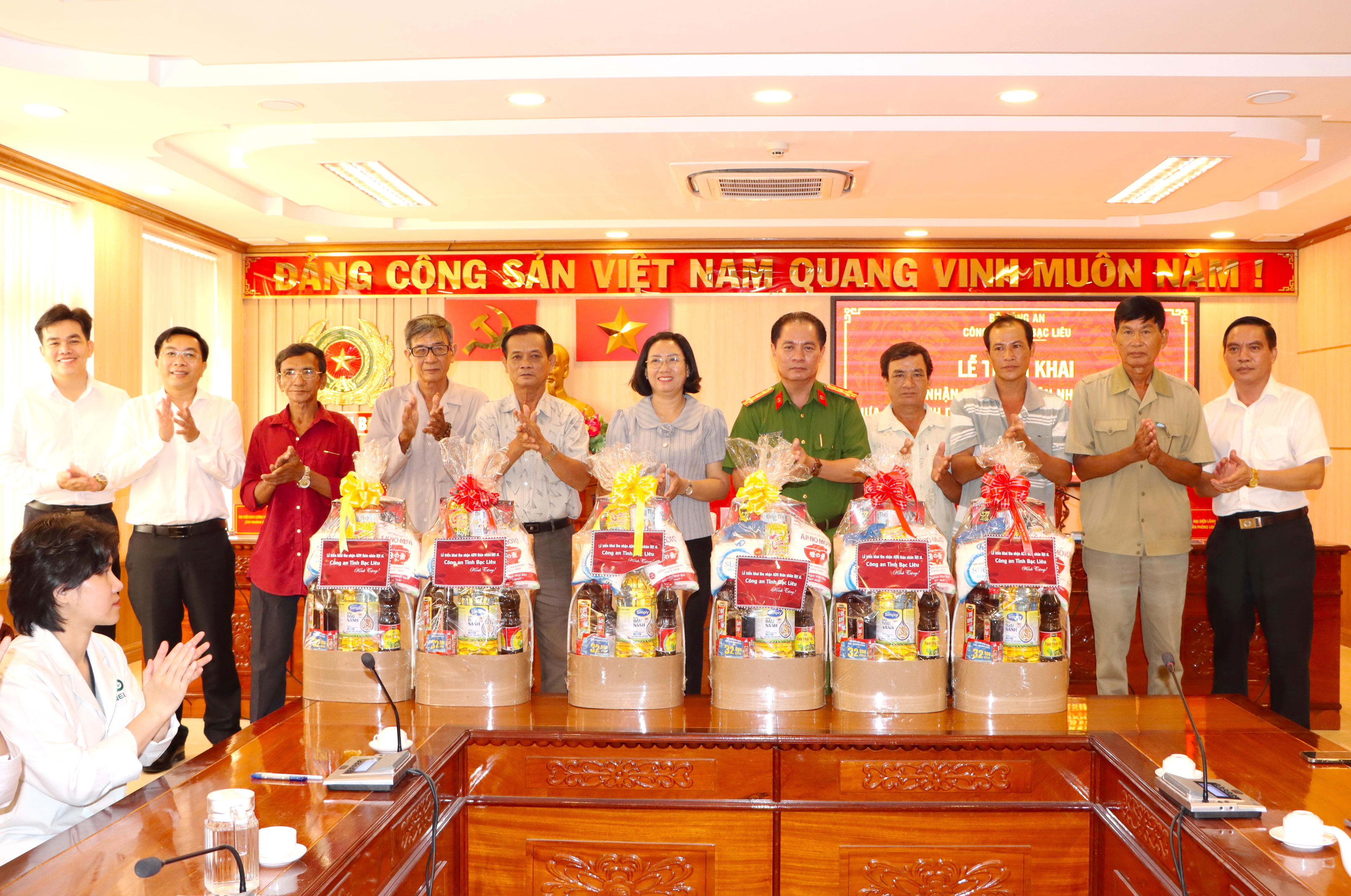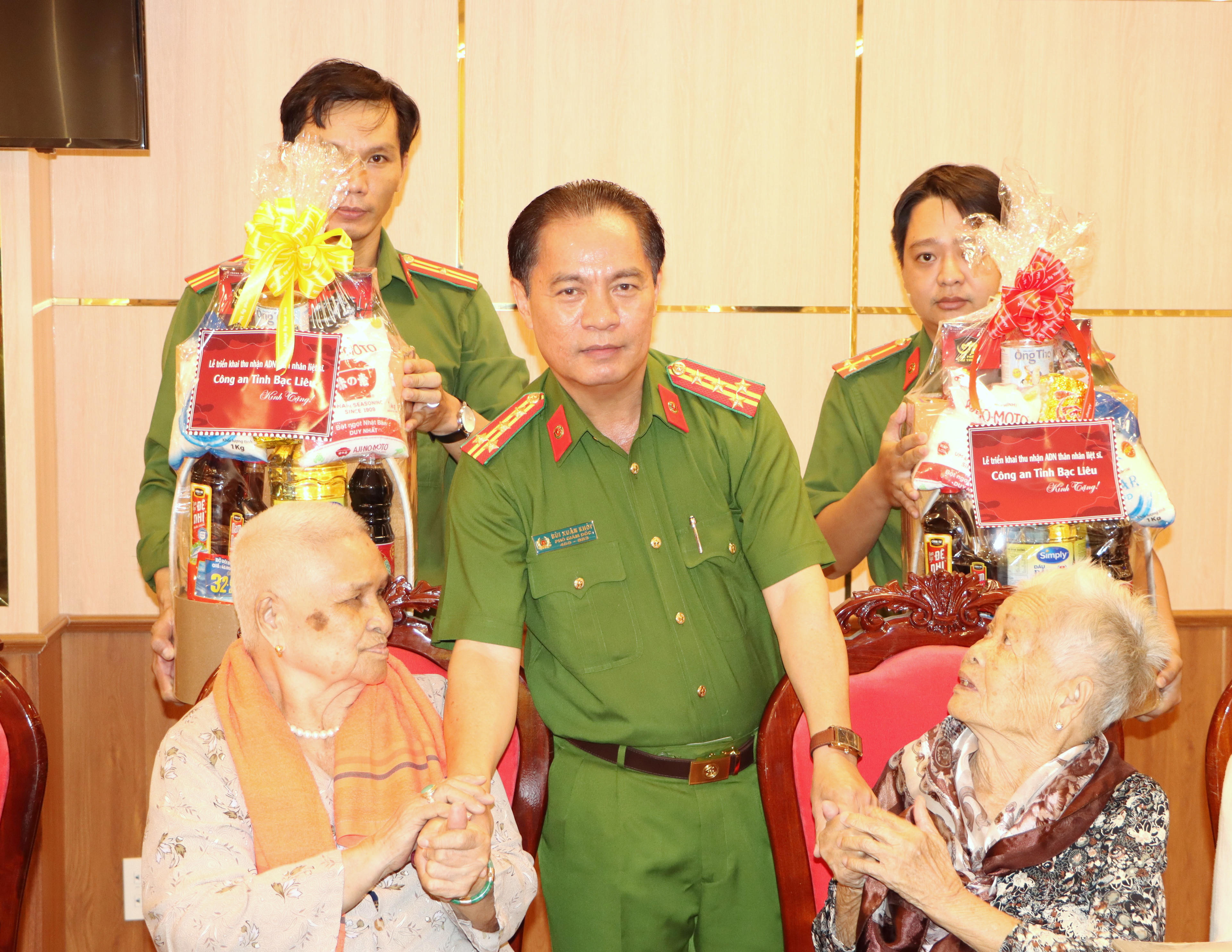 Dịp này, Công an tỉnh Bạc Liêu trao tặng những phần quà ý nghĩa cho các thân nhân liệt sĩ chưa xác định danh tính tham gia lấy mẫu tại buổi lễ.