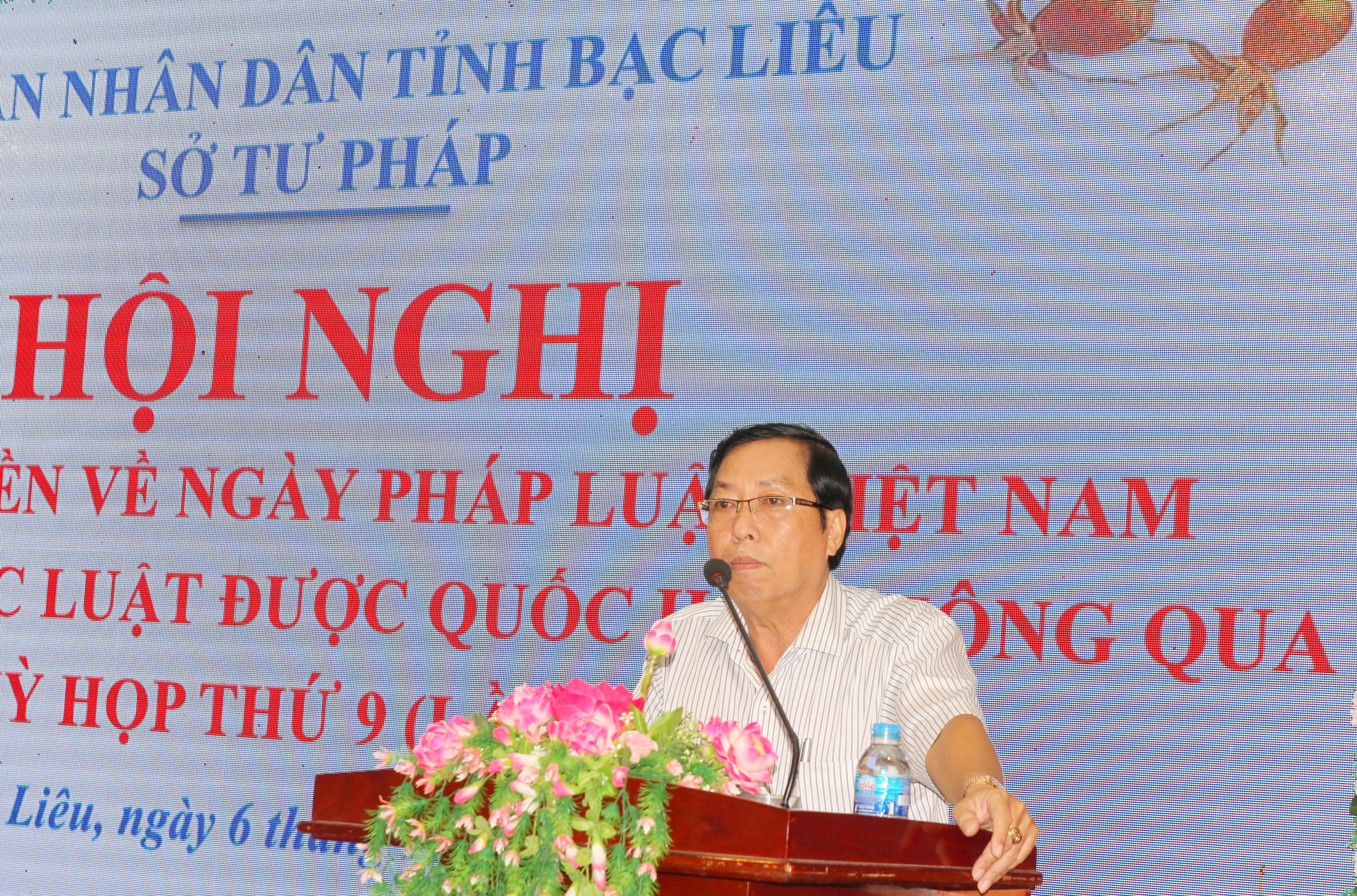 Phát biểu tại Hội nghị, Phó Giám đốc Sở Tư pháp, Phó Chủ tịch Hội đồng Phối hợp PBGDPL tỉnh Bạc Liêu Trần Minh Đức cho biết: Ngày Pháp luật Việt Nam năm nay được tổ chức nhằm tiếp tục lan tỏa tinh thần thượng tôn Hiến pháp và pháp luật trong xã hội, góp phần đưa pháp luật đi vào cuộc sống, nâng cao ý thức pháp của cán bộ, công chức, viên chức và nhân dân; nâng cao chất lượng, hiệu quả việc thực hiện các nhiệm vụ chính trị của Bộ, ngành, địa phương; thiết thực chào mừng các sự kiện lớn của đất nước, đặc biệt là Đại hội Đảng các cấp tiến tới Đại hội đại biểu toàn quốc lần thứ XIII.
