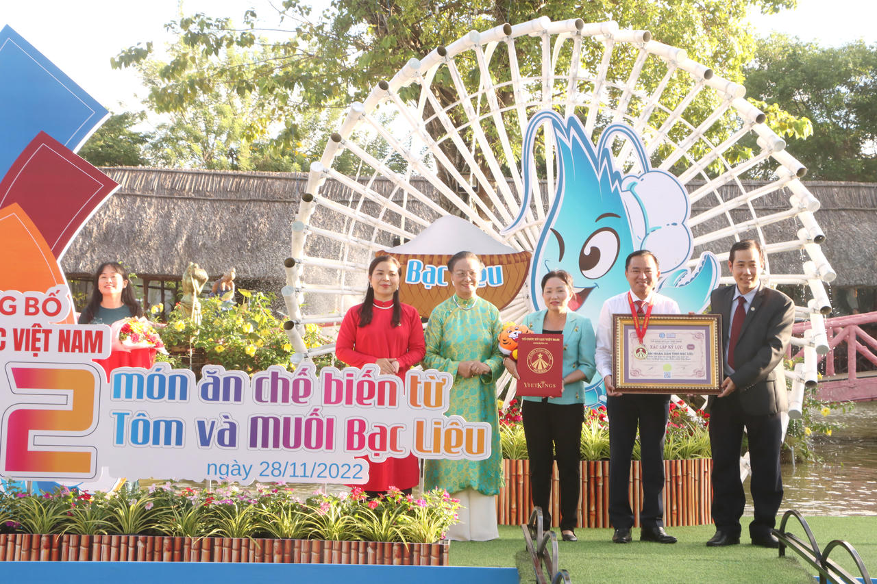 Tại buổi lễ, bà Nguyễn Thị Huỳnh Ngọc – Tổng thư ký Hội Ẩm thực Việt Nam đã thông qua quyết định xác lập kỷ lục: Sự kiện chế biến và công diễn các món ăn từ tôm và muối Bạc Liêu nhiều nhất Việt Nam.