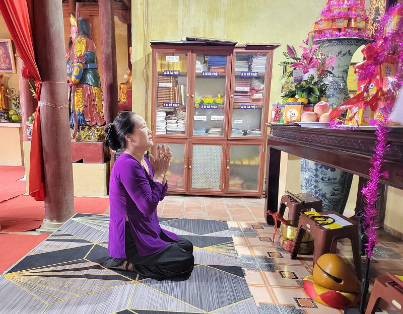 Người dân thành kính khấn vái tại ban Tam Bảo trong Chùa. |