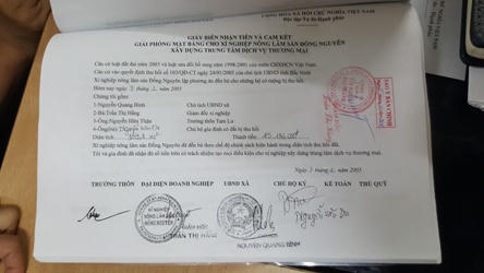 Trong khi người chủ sở hữu thửa đất 3,59.8m2 bị thu hồi này tên Nguyễn Thế Du khẳng định chưa nhận được tiền cũng như chưa ký vào bất cứ giấy nhận tiền nào. Một điều lạ lùng trong văn bản giả mạo chữ ký người dân này có đầy đủ chữ ký và con dấu của UBND phường Đồng Nguyên do Chủ tịch Nguyễn Quang Bình ký và Trưởng thôn Tam Lư ký xác nhận.
