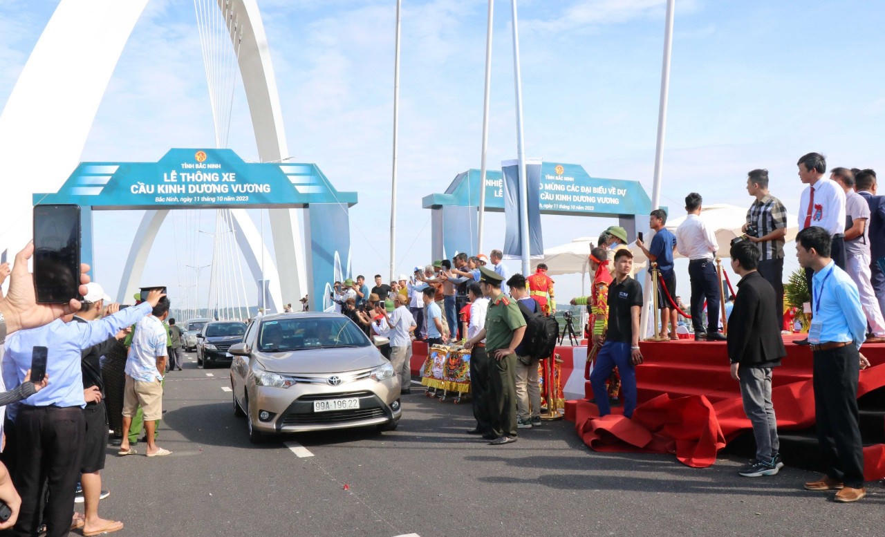 Dự lễ khánh thành và thông xe cầu Kinh Dương Vương có Phó Thủ tướng Trần Lưu Quang; Bí thư Tỉnh ủy Bắc Ninh Nguyễn Anh Tuấn; Phó Bí thư Thường trực Tỉnh ủy, Chủ tịch HĐND tỉnh Bắc Ninh Nguyễn Quốc Chung; Chủ tịch UBND tỉnh Bắc Ninh Nguyễn Hương Giang.