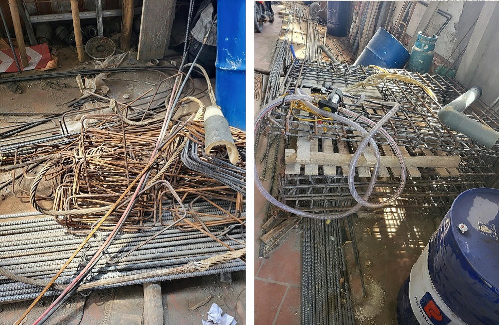 Nhà chỉ huy công trường được Công ty xây dựng Việt Đức (TNHH) thuê lại của một hộ dân cạnh điểm đặt biển báo công trình (điểm cuối thi công), bên trong nhà chỉ huy này có một số vật liệu để ngổn ngang, một số thanh sắt đã có dấu hiệu bị han gỉ, các cột sắt được che bằng túi bóng đen một cách sơ sài cũng bị gỉ sét.