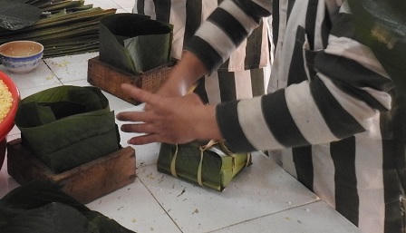 Bắc Ninh: Phạm nhân hồ hởi gói bánh chưng vui Tết Đinh Dậu