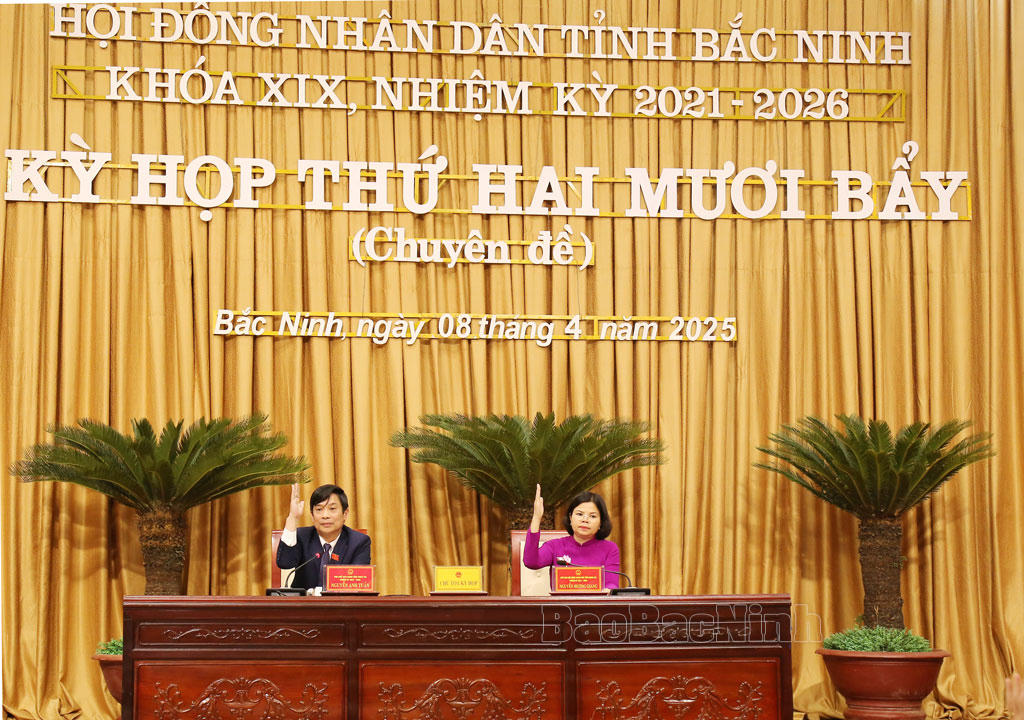 | Các đại biểu thông qua Nghị quyết tại kỳ họp. Ảnh: Báo Bắc Ninh |