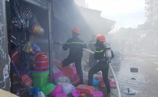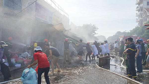 Lực lượng chức năng hỗ trợ người dân đưa những tài sản còn giá trị, dễ bắt lửa ra ngoài để tránh những thiệt hại do lửa gây ra. Khoảng 30 phút sau, ngọn lửa được khống chế dập tắt hoàn toàn, nhiều tài sản, hàng hóa bên trong các ki ốt bị thiêu trụi, hư hỏng, rất may không có thiệt hại về người.