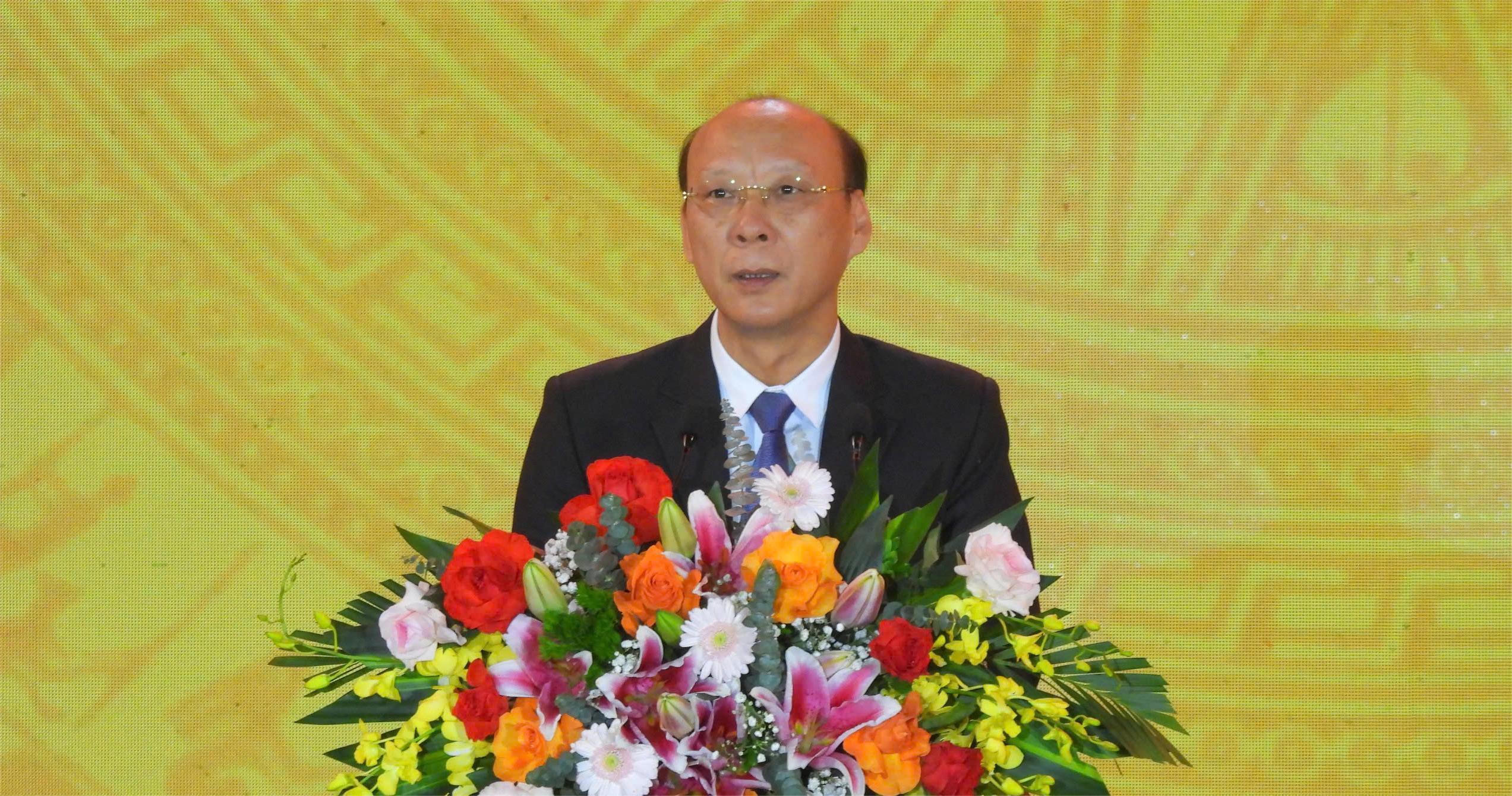 Ông Trần Đức Thắng - Chủ tịch UBND thị xã Quảng Yên - phát biểu tại Lễ khai hội. |