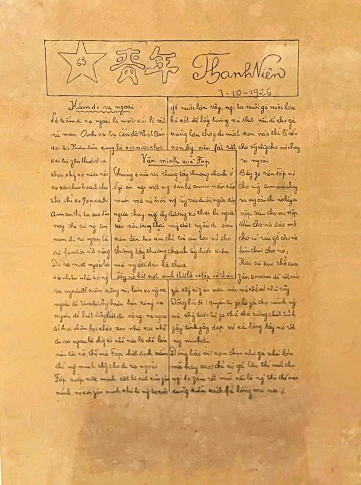 Báo Thanh Niên số ra ngày 3/10/1926. Tư liệu trưng bày tại Bảo tàng Lịch sử Quốc gia. (Ảnh: VT) |