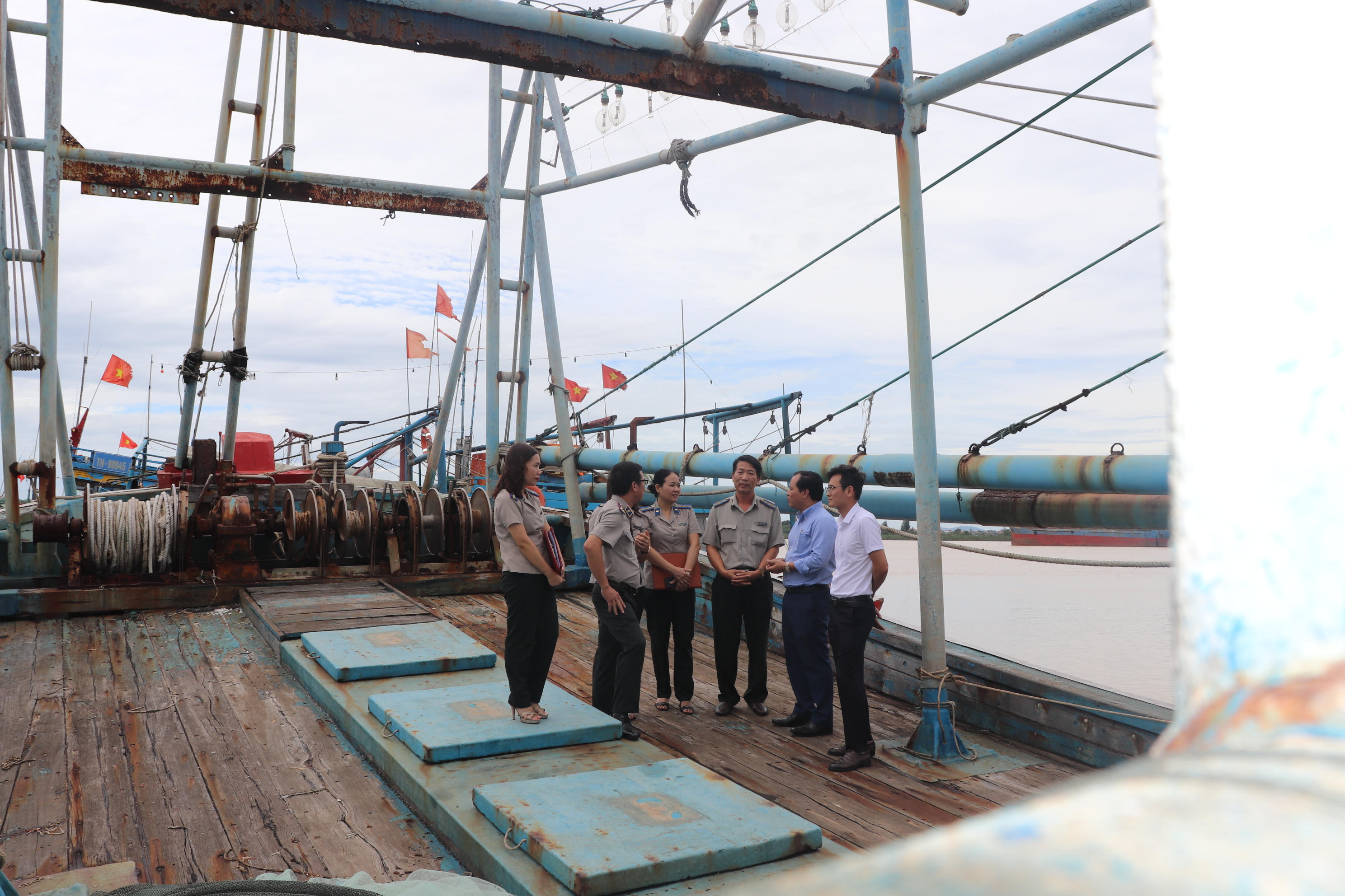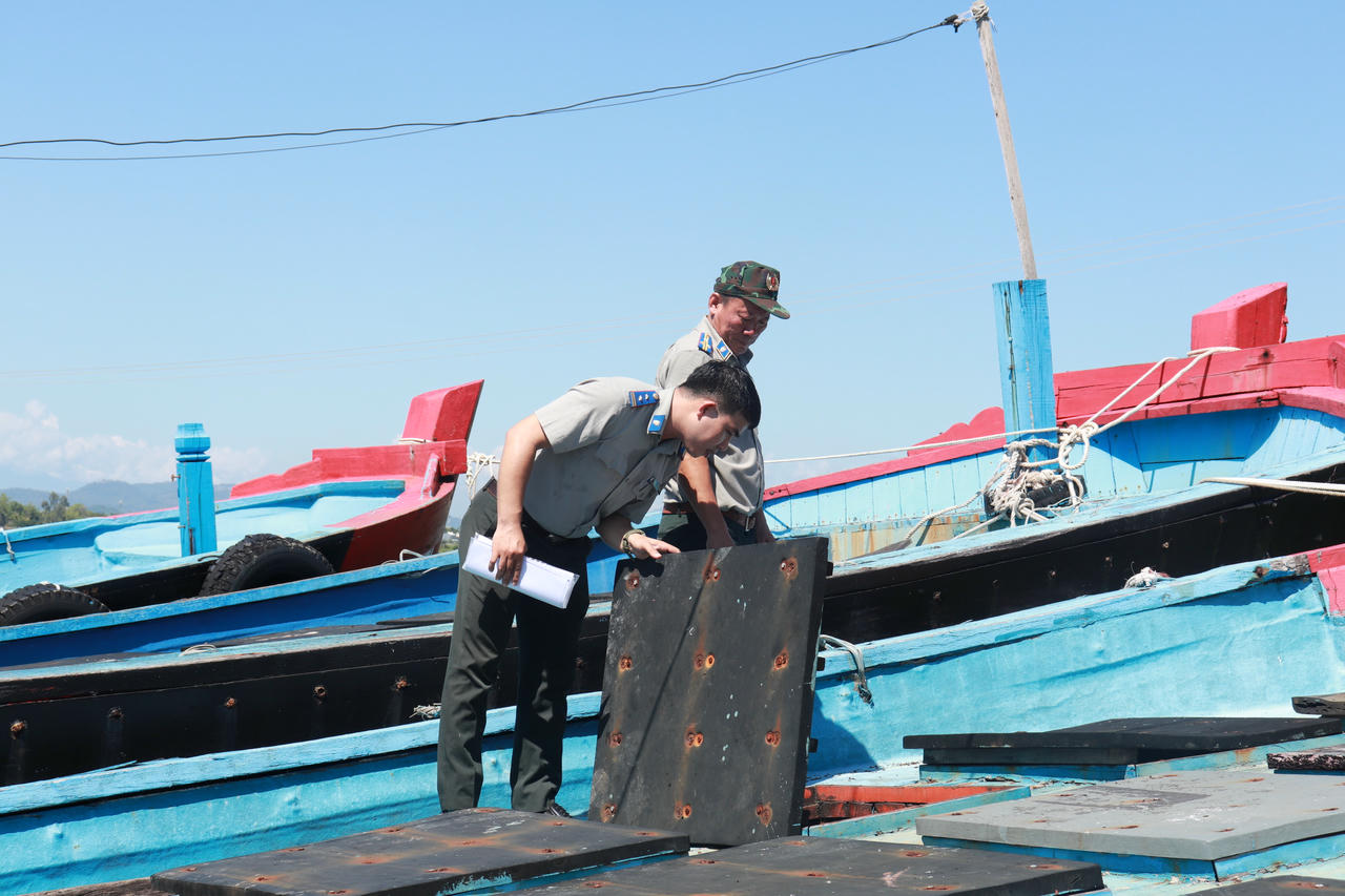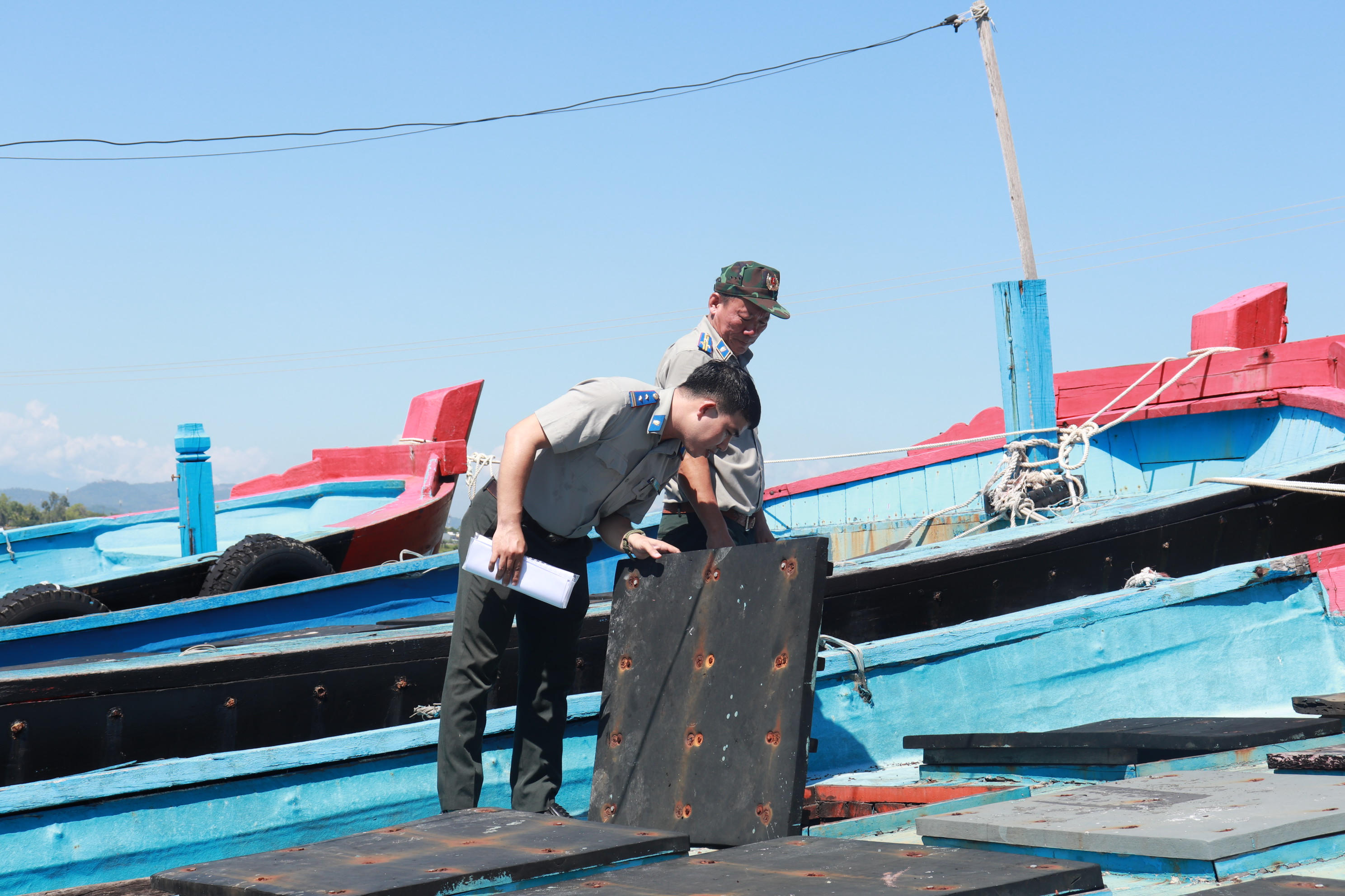 Chấp hành viên Cục THADS Quảng Nam kiểm tra tàu cá neo đậu |
