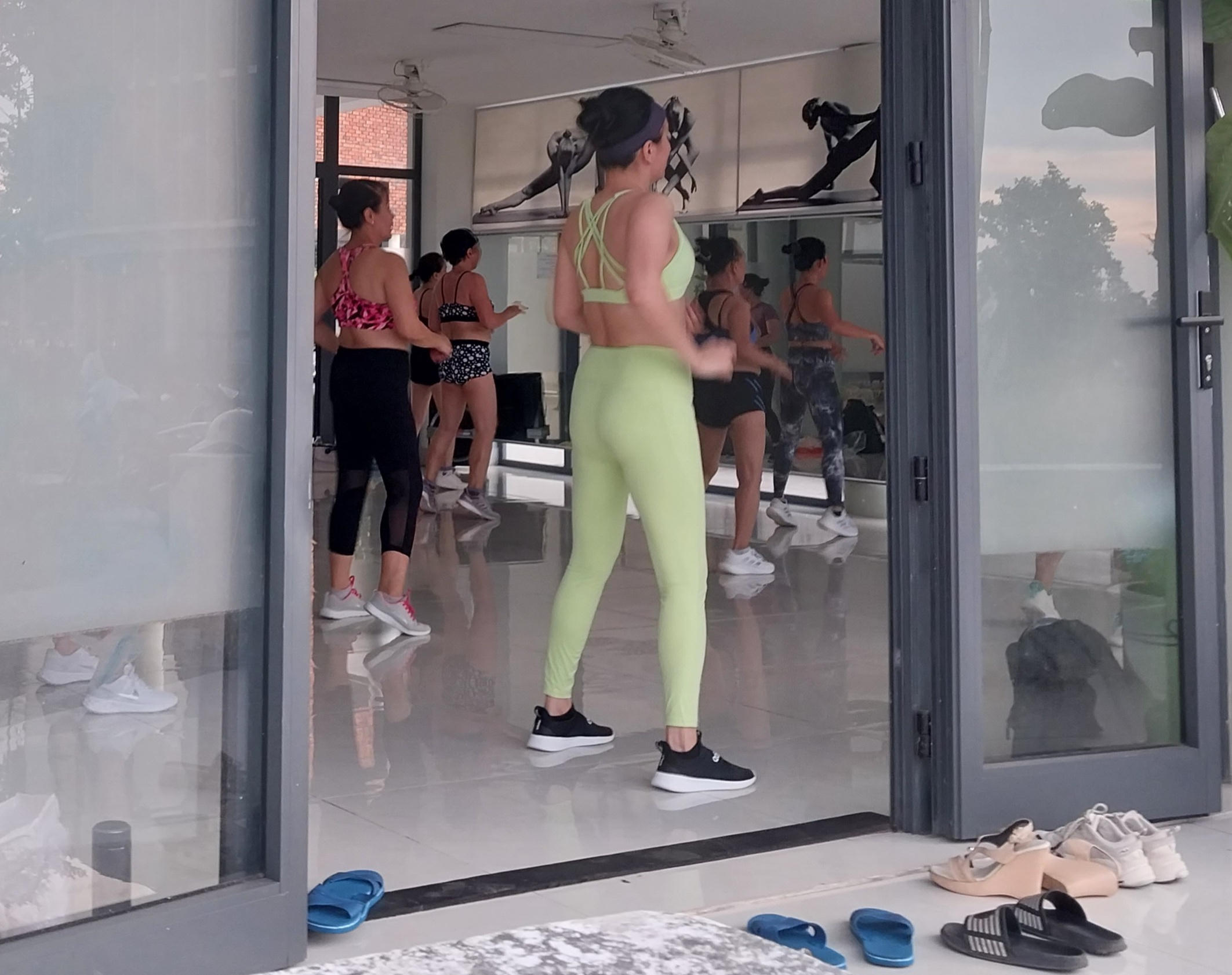 Dịch vụ aerobic trong khuôn viên Học viện Âm nhạc Huế. (Hình chụp chiều 27/7). |