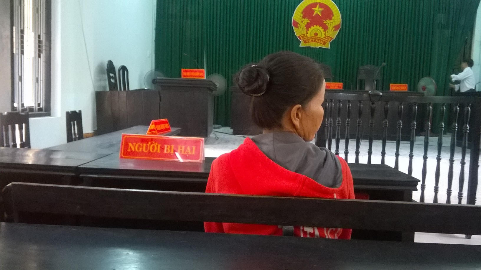 Khoảng sân nhỏ đột nhiên bị tiếng gào la của bị hại mà ồn ào inh ỏi khiến nhiều cửa sổ trong tòa nhà cũng như tòa nhà bên cạnh liên tục mở ra, bao nhiêu con mắt hiếu kỳ nhìn chằm chằm về khoảng sân nhỏ của tòa án. Nhưng bị hại vẫn không ngừng gào lên, khiến gia đình bị cáo bất đắc dĩ đành hướng phía khác, kéo nhau rời đi.