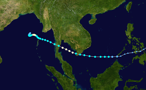 Đường đi của bão Linda năm 1997. |