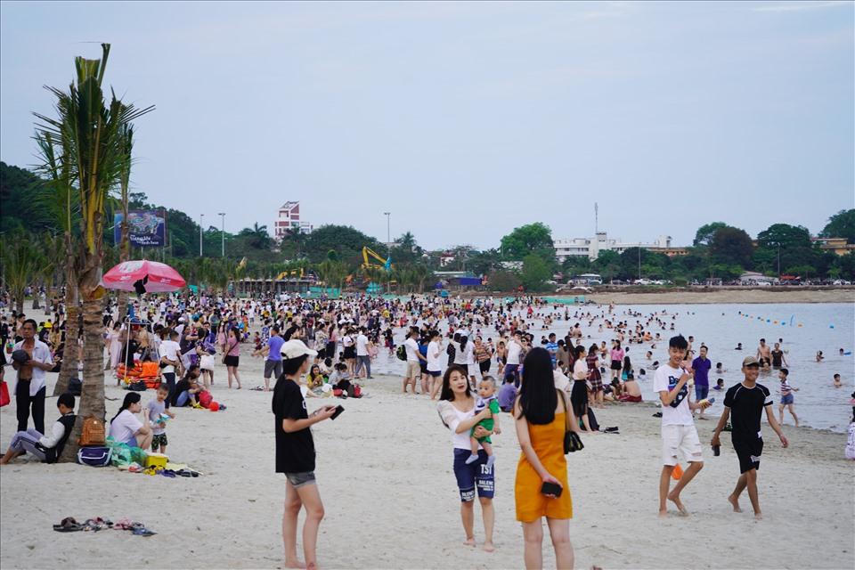Du khách đông đúc tại bãi biển ( Ảnh: Mai Dung) |