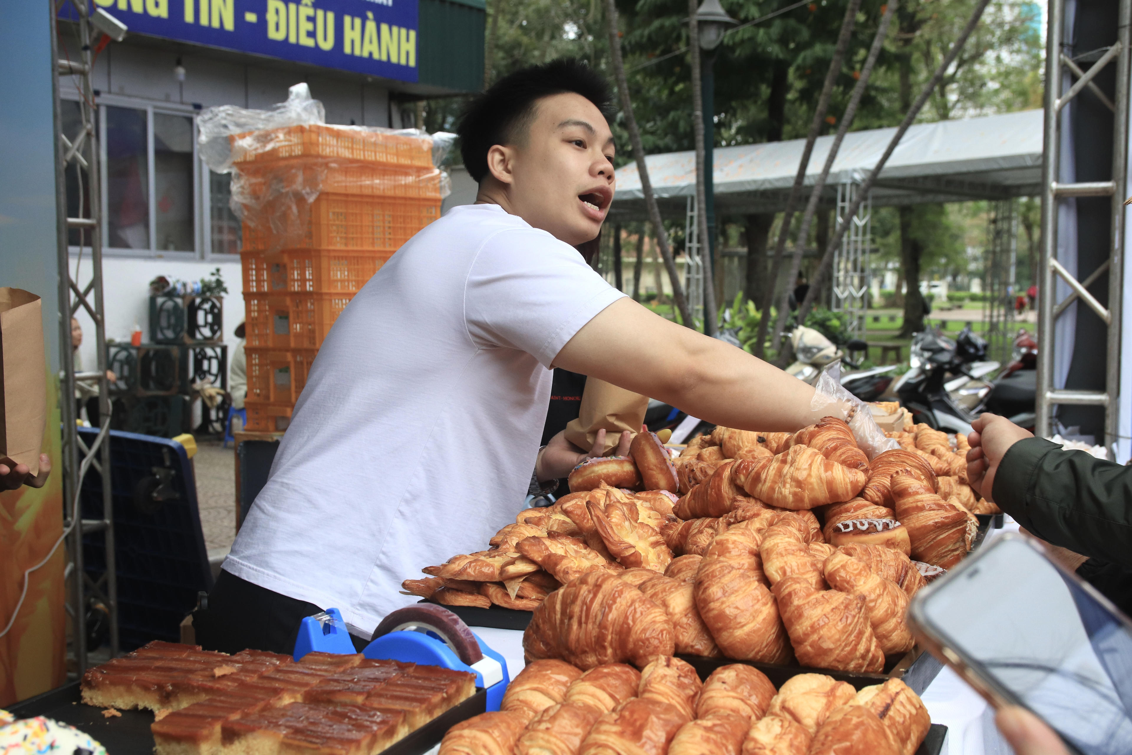 Elise đang chuẩn bị bánh để đón những vị khách tới tham quan gian hàng. Ảnh: Yến Nhi |