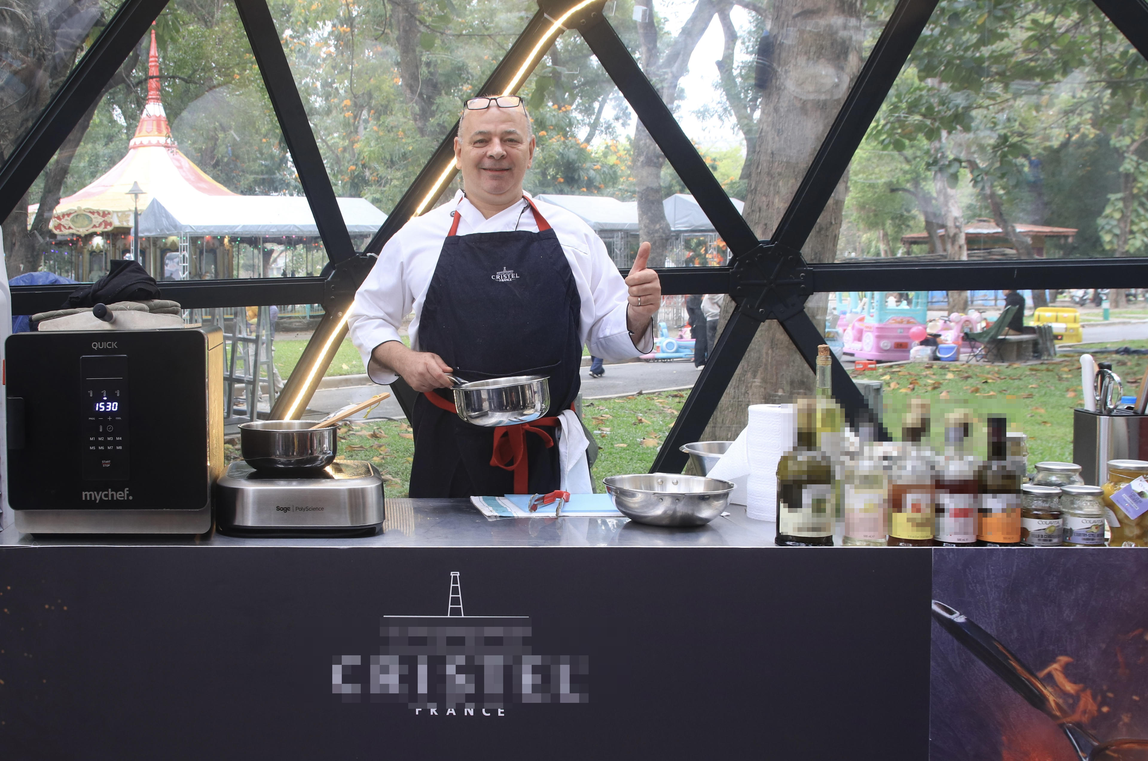 Không chỉ dừng lại ở việc thỏa mãn vị giác qua vô vàn món ngon tại gần 80 gian hàng, Balade en France 2025 còn mang đến trải nghiệm thị giác đầy cuốn hút qua các màn trình diễn nấu ăn trực tiếp. Các đầu bếp chuyên nghiệp đến từ Pháp cũng như những nhà hàng và khách sạn danh tiếng như La Table Hanoia, Metropole, Saint Honore, đã thực sự biến khu vực sân khấu thành một căn bếp mở đầy nghệ thuật.