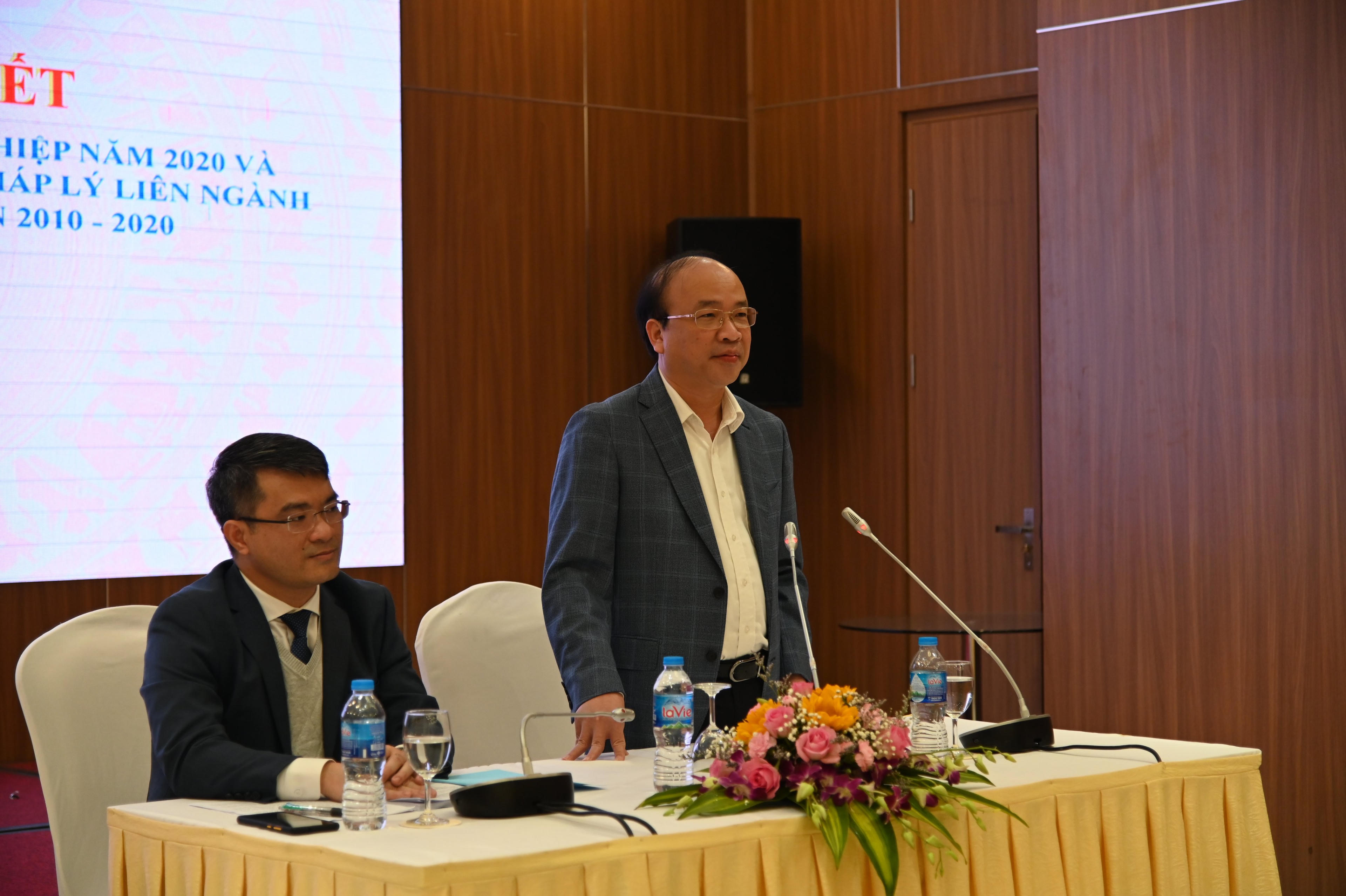 (PLVN) -Chiều 25/12, Bộ Tư pháp tổ chức Hội nghị Tổng kết công tác hỗ trợ pháp lý cho doanh nghiệp năm 2020 và 10 năm thực hiện chương trình hỗ trợ pháp lý liên ngành dành cho doanh nghiệp giai đoạn 2010 – 2020 (Chương trình 585). Đồng chủ trì Hội nghị là Thứ trưởng Bộ Tư pháp Phan Chí Hiếu và Vụ trưởng Vụ Pháp luật Dân sự - Kinh tế (Bộ Tư pháp) Nguyễn Thanh Tú.