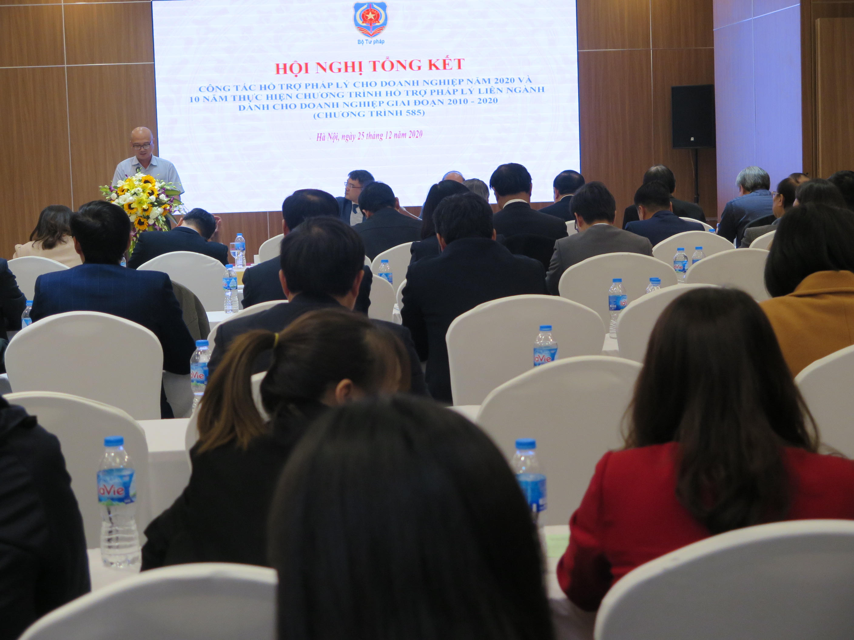 Kết luận Hội nghị, Thứ trưởng Bộ Tư pháp Phan Chí Hiếu cơ bản nhất trí với Dự thảo báo cáo Tổng kết 10 năm thực hiện Chương trình 585 và Báo cáo Kết quả thực hiện các hoạt động năm 2020 của Chương trình 585. Thứ trưởng đánh giá cao các kết quả đã đạt được: Tổ chức được số lượng lớn các hoạt động hỗ trợ doanh nghiệp, các hoạt động có nhiều nội dung mới, phong phú đa dạng, hiệu quả. Nhiều hoạt động có sự lan tỏa cao; Cải thiện và củng cố mối quan hệ pháp lý giữa doanh nghiệp và Nhà nước. Nhà nước rõ hơn về nhu cầu doanh nghiệp, từ đó xây dựng chính sách phù hợp. Doanh nghiệp nắm vững pháp luật hơn. Những kết quả trên có được nhờ sự tham gia hưởng ứng của cộng đồng doanh nghiệp, sự nỗ lực cố gắng của các cơ quan đơn vị, cá nhân…