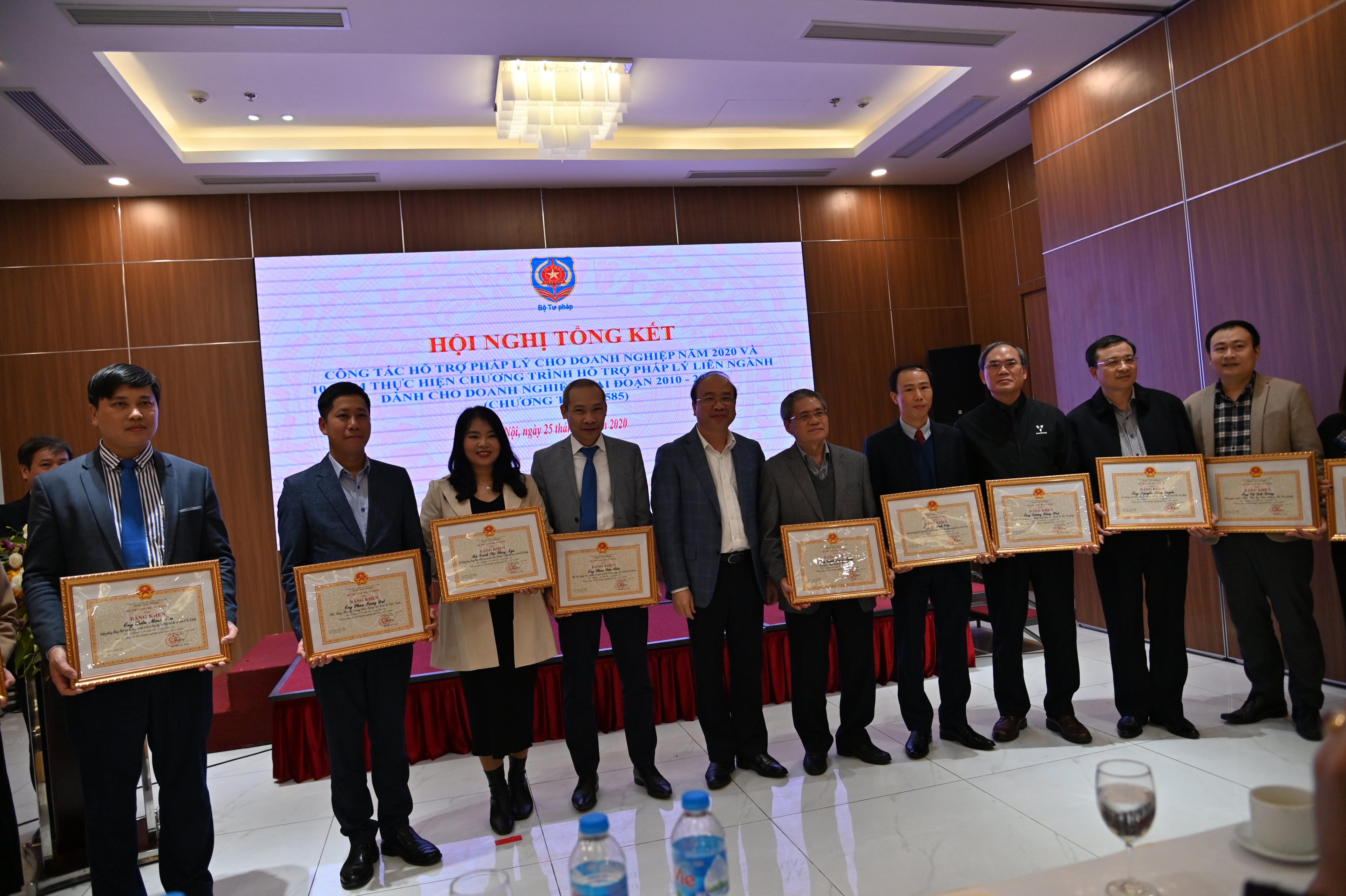 Cũng tại Hội nghị, đại diện Vụ Thi đua – Khen thưởng (Bộ Tư pháp) đã Công bố Quyết định của Bộ trưởng Bộ Tư pháp về việc khen thưởng cho các tập thể, cá nhân có thành thành tích xuất sắc trong công tác hỗ trợ pháp lý liên ngành cho doanh nghiệp giai đoạn 2015 – 2020. Có 13 tập thể và 19 cá nhân nhận được bằng khen của Bộ trưởng.