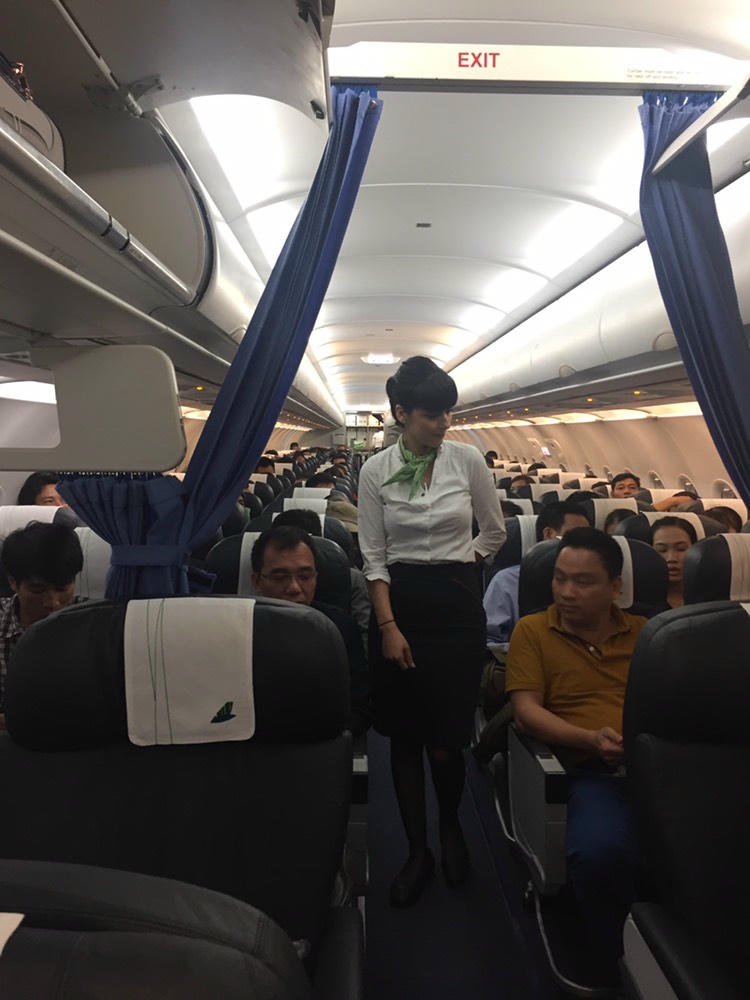 Anh Tiến một hành khách đầu tiên ra Hà Nội công tác cho cảm nhận, “theo dõi thông tin và được biết Bamboo Airways có chuyến bay thương mại đầu tiên sáng nay, tôi đã rất may mắn đăng ký thành công và được trải nghiệm trên chuyến bay đầu tiên này của hãng để thực hiện chuyến công tác cuối năm tại Hà Nội. Cảm nhận ban đầu là rất chuyên nghiệp, tôi ấn tượng với những cô tiếp viên với trang phục khá hiện đại nhưng cũng không thiếu nét truyền thống với những khăn quàng cổ xinh xắn biểu tượng cây tre của hãng. Một điều nữa là món ăn mà tôi được thưởng thức trên máy bay rất tuyệt”