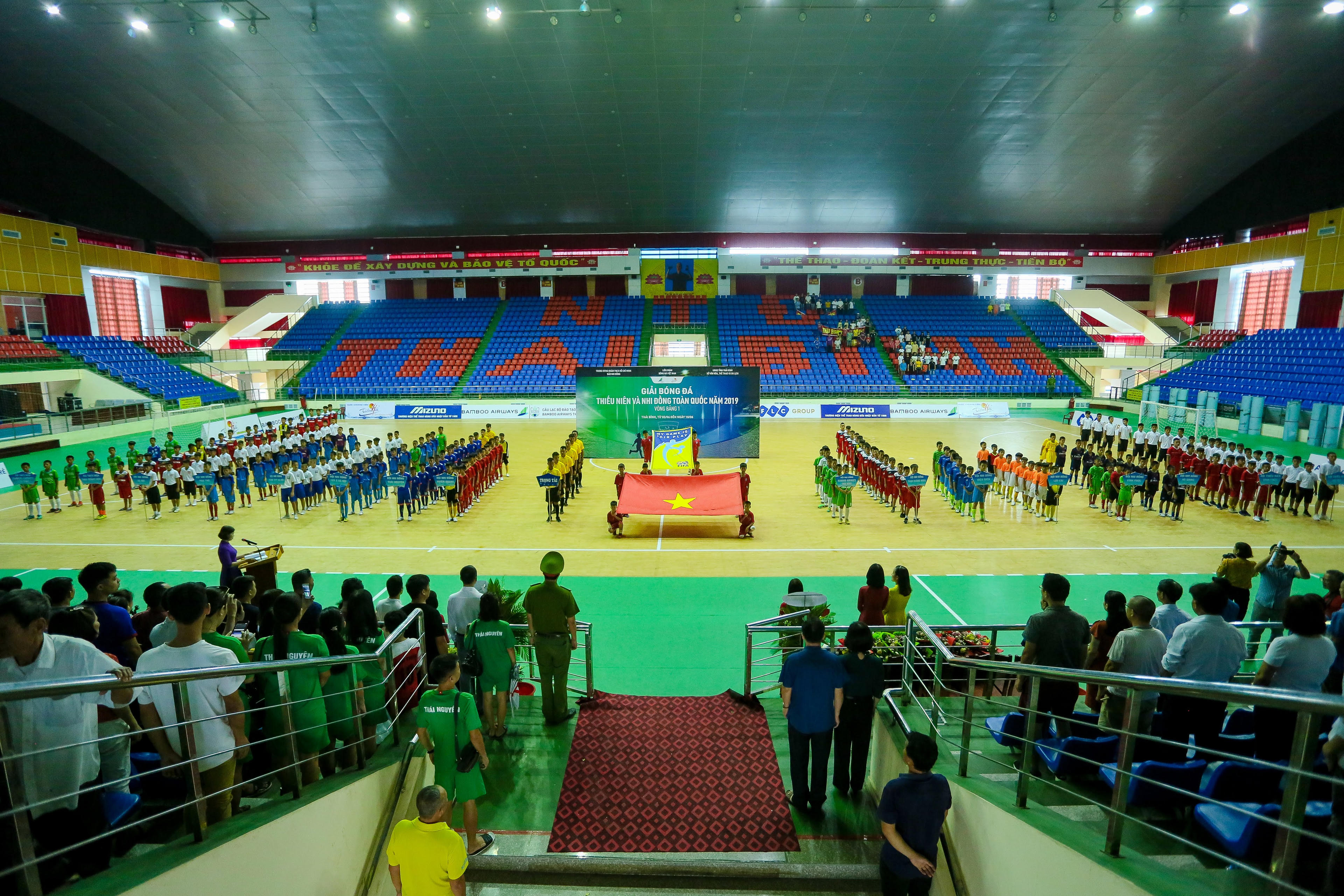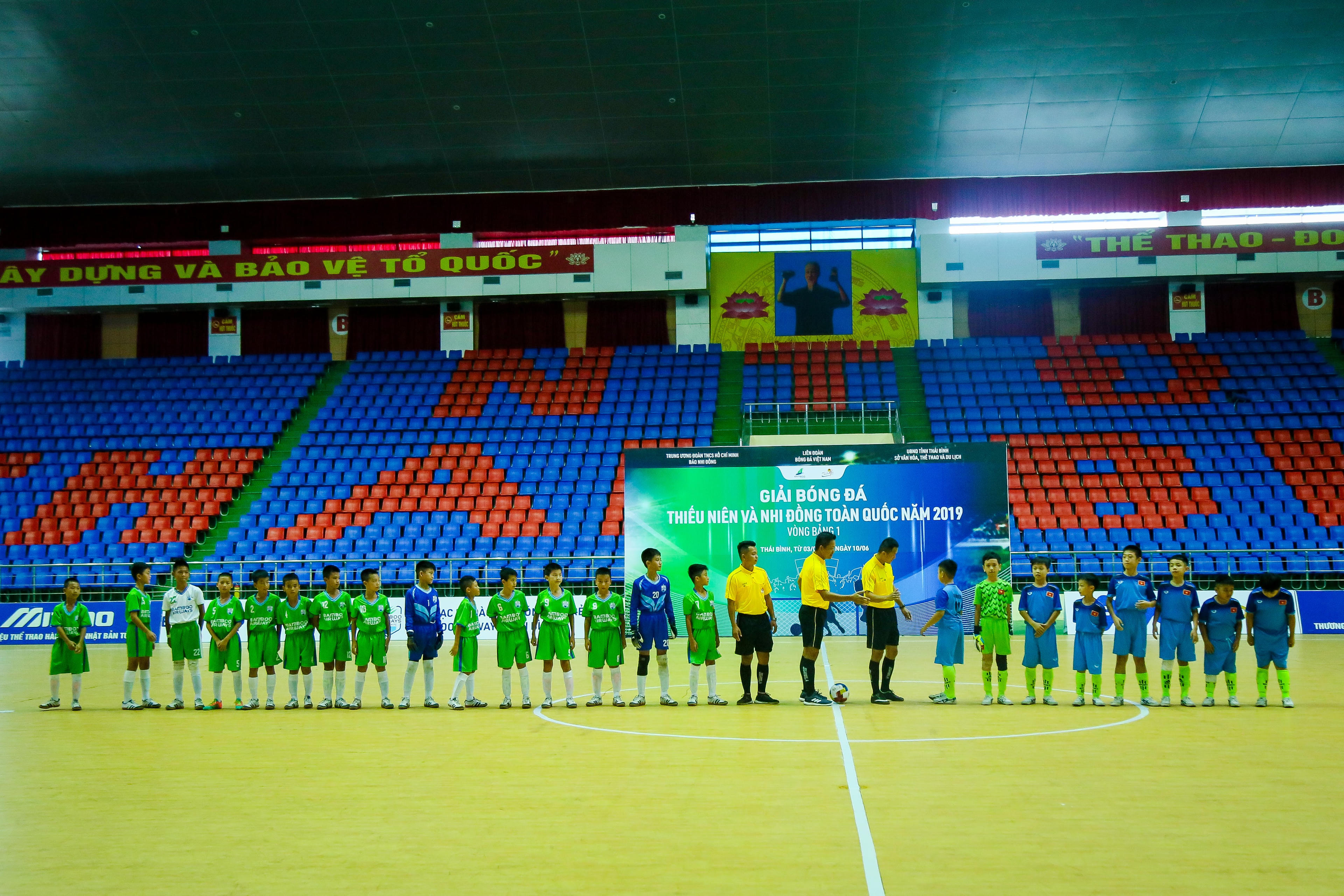 (PLVN) - Ngày 03/06, Lễ khai mạc vòng bảng (Bảng I) của Giải bóng đã Thiếu niên và Nhi đồng toàn quốc năm 2019 đã chính thức được diễn ra tại Nhà thi đấu đa năng Thái Bình dưới sự chứng kiến của các cấp lãnh đạo tỉnh Thái Bình, đại diện các nhà tài trợ cùng 16 đội bóng tham gia giải đấu.