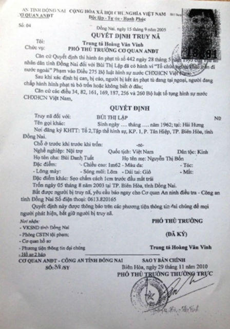 Vậy, Oanh là người như thế nào? Năm 1993, Oanh bị Tòa án nhân dân tỉnh Đồng Nai tuyên phạt tù về hành vi “tổ chức người khác trốn đi nước ngoài” theo điều 275 Bộ luật Hình sự. Khi có quyết định thi hành án, Oanh đã bỏ trốn. Cơ quan An ninh Điều tra Công an tỉnh Đồng Nai đã có Lệnh truy nã số 04 ngày 15/09/2005.