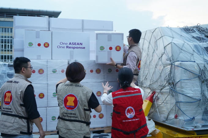 Đồ viện trợ của Trung tâm AHA tới sân bay Nội Bài ngày 13/9. (Ảnh: Cục Quản lý đê điều và Phòng, chống thiên tai) |