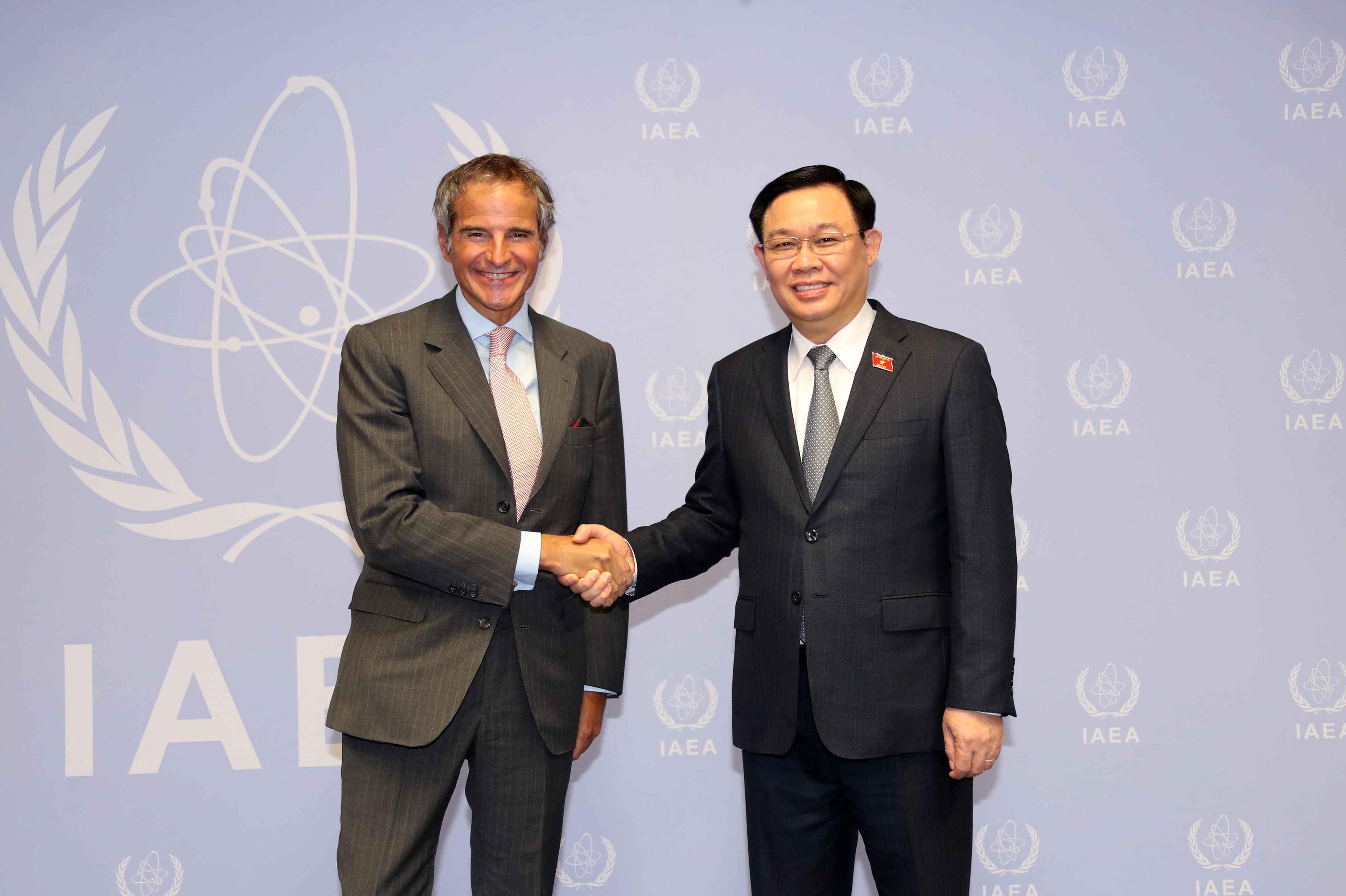 Theo đó, tại trụ sở Liên Hợp quốc, Thủ đô Vienna, Cộng hòa Áo, Chủ tịch Quốc hội (QH) Vương Đình Huệ đã gặp Tổng Giám đốc Cơ quan Năng lượng nguyên tử Quốc tế (IAEA) Rafael Mariano Grossi.