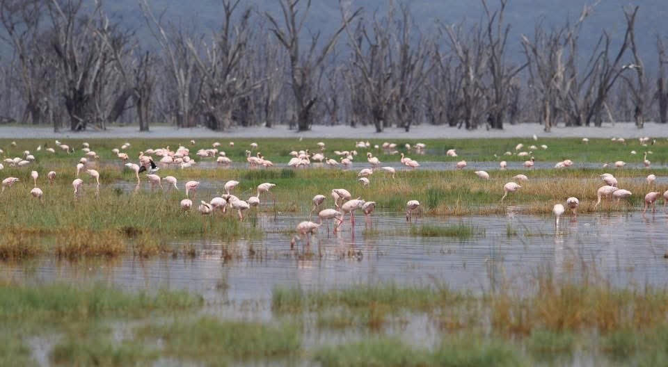 Bạn nghĩ gì trước bức tranh thiên nhiên đẹp đến nao lòng khi ngắm hoàng hôn trên hồ với hàng ngàn đàn chim hồng hạc, cò, vạc, bồ nông.. những con Hà mã béo mầm lặn ngụp ngay bên chúng, và muôn hình vạn trạng các cây khô vì ngập mặn đứng im lìm như trong bức tranh “Con Nước Lớn” của Levitan?!