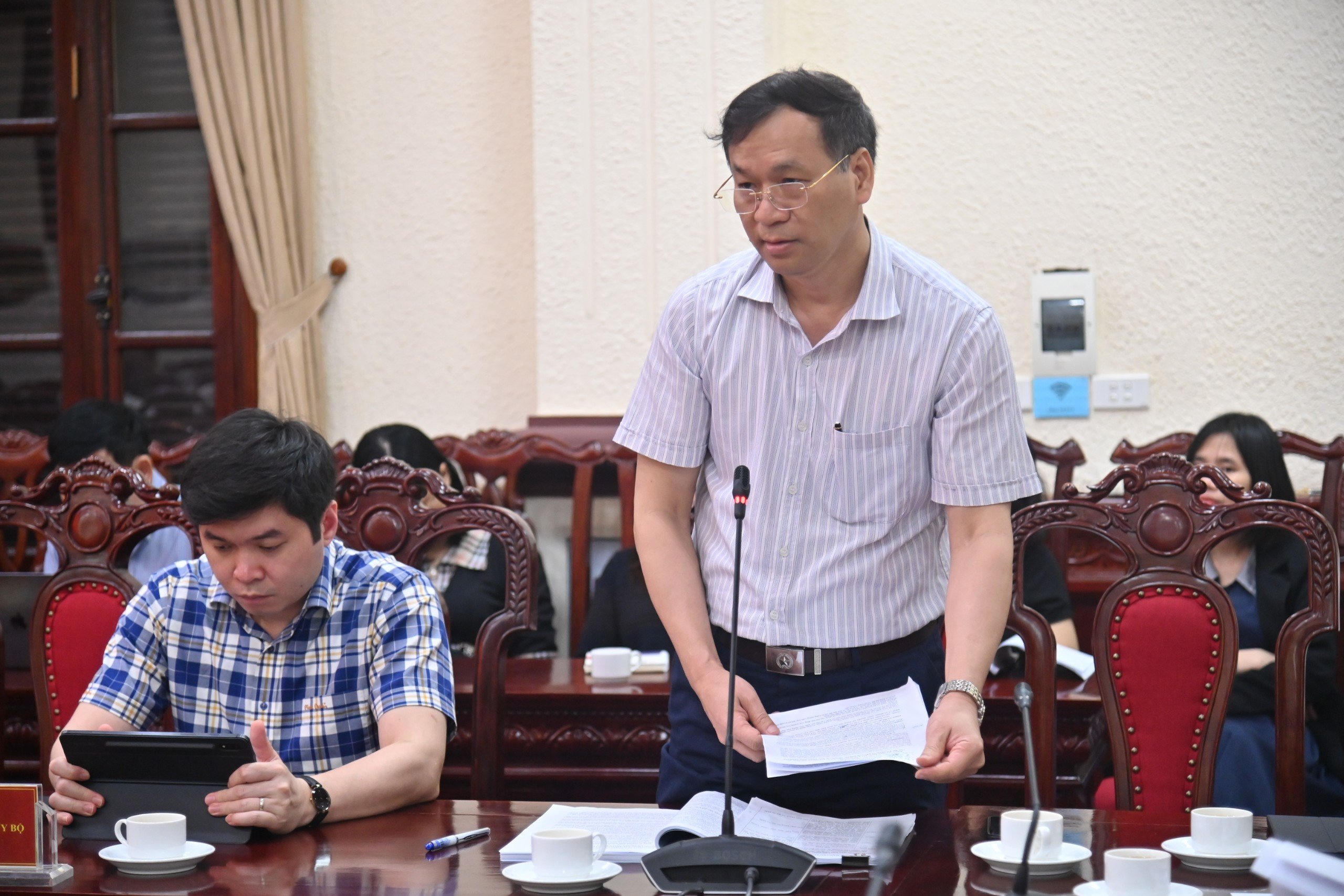Để Hội nghị đạt được mục tiêu, yêu cầu đề ra, Thứ trưởng đề nghị các Đại biểu thực hiện nghiêm nội quy, kỷ luật tham dự Hội nghị; nghiên cứu kỹ tài liệu, tập trung lắng nghe Báo cáo viên trình bày; tích cực thảo luận, phát biểu về vướng mắc, bất cập từ thực tiễn để sau Hội nghị này không chỉ nắm chắc được các nội dung và yêu cầu của Quy định số 131 và Quy định số 132 mà quan trọng hơn là triển khai thực hiện đầy đủ, nghiêm túc các nhiệm vụ được giao với chất lượng cao nhất.